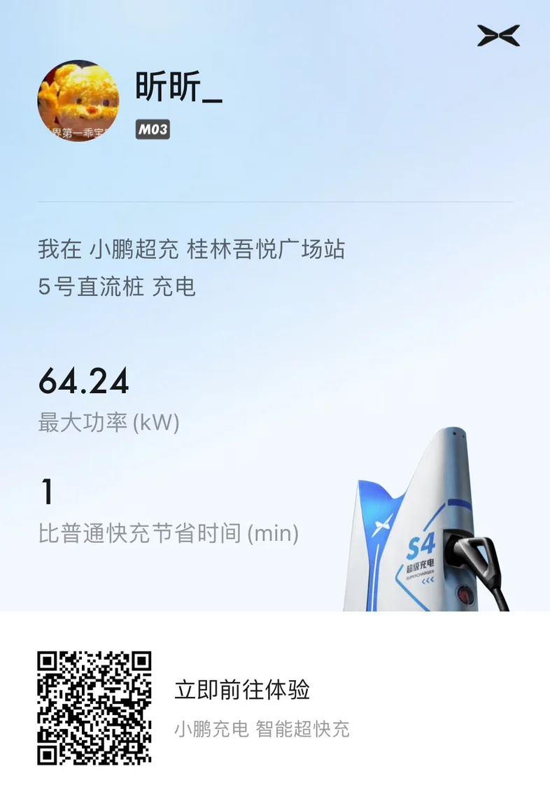 #小鹏超快充,电力全开# 国庆长假来临,我驾驶小鹏MONA M03,体验了小鹏超快充的便捷。在我所在的城市,我惊喜地发现,小鹏超快充站点星罗棋布,无论是繁华都市还是宁静小镇,总有一处超充站静候我的到来。快速补能,仅需一杯咖啡的时间,电量就能迅速回血,大大减少了等待时间。小鹏超快充的高效,让我的长途旅行更加轻松自在,即使路途遥远,也无需担心电量不足。小鹏超快充不仅充电速度快,而且充电站点多,覆盖面广,让我在国庆期间的旅行中,可以随心所欲地规划路线,享受说走就走的自由。充电站的便捷性,让我在旅途中享受到了更多的风景和乐趣,而不用担心因为充电而耽误行程。小鹏超快充,真正提升了我的旅行品质,让我的国庆之旅更加完美。@充电小助手 👉国庆节假日还赠送了充电年服务费卡及充电抵扣券哦~😍
