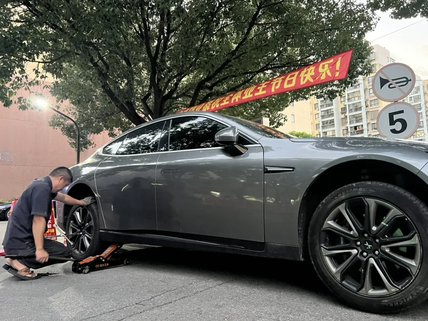 车胎被扎,打电话给小鹏叫拖车服务,没过一会小鹏客户打电话来,说我们有移动补胎服务,免费上门,预约好之后10几分钟师傅就到了,师傅人非常好,还客气,40分钟搞定了,天气冷了还帮我其余3个轮胎补了气,为小鹏汽车的这项服务点赞[强][强][强]