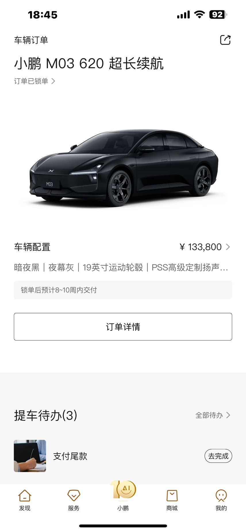#晒小鹏MONA M03大定锁单# 今天去4s店 第一眼就看上了这台车 果然名不虚传 黑武士太好看了 配19寸米其林轮毂.超大的后备箱空间.还有一个年轻人最喜欢的掀背的造型.简直是梦中情车 外观到内饰已经非常吸引我了 内置8155芯片 丝滑如水一点都不卡顿.然后自动泊车 L2智能辅助驾驶 氛围灯 记忆座椅.全景天窗 座椅舒服 通风加热620版本标配 所以说 你还不入手吗?