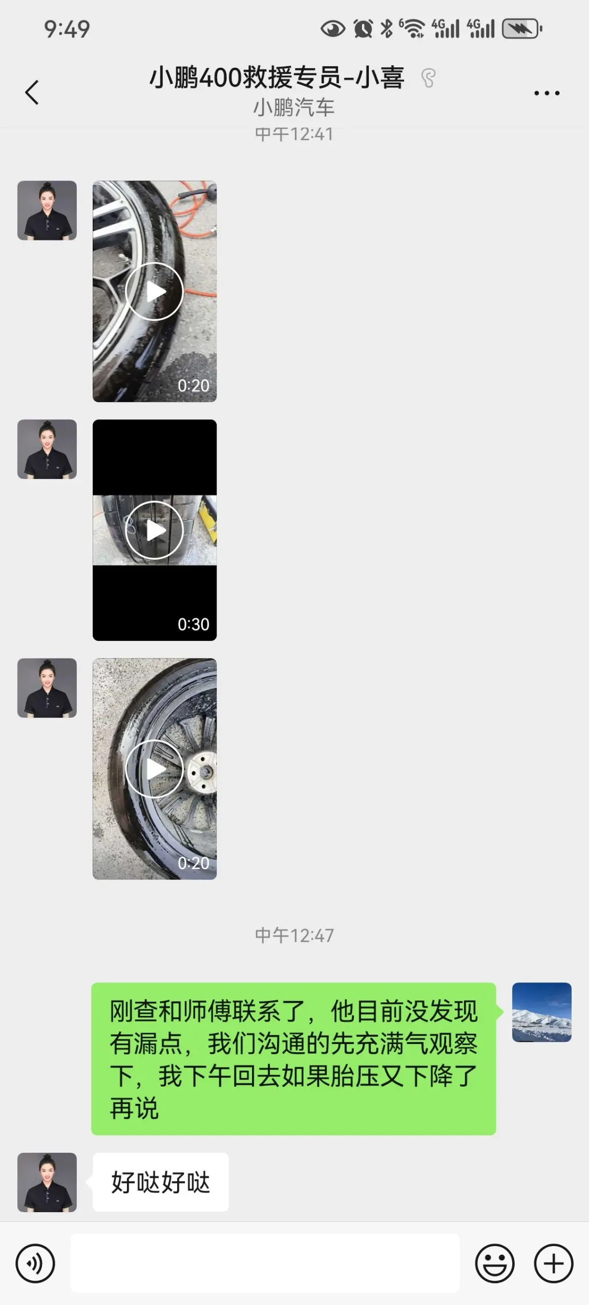 4、虽然小鹏的上门补胎服务没能给我解决问题,最终是我自费修好了轮胎,但是还是要给小鹏的服务竖大拇指,后续要提高补胎师傅的技术水平,毕竟这项服务的目的是补好胎,否则服务再好没解决问题也没用的。