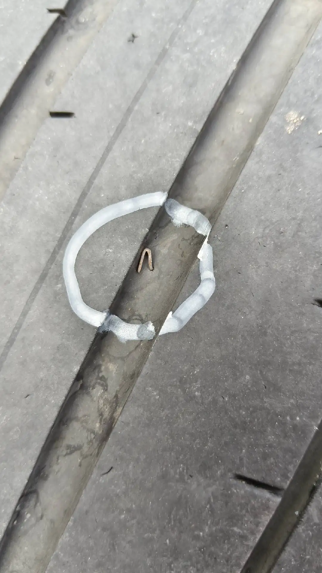 我的车辆行驶3万公里,个人感觉这就换胎有点不值得,就沟通师傅先帮我把这些异物都清理掉,看看是不是都扎透了,如果漏点不多还是采取补胎的方式,补胎师傅同意。清理后开始找漏点,结论是没发现有漏点[汗颜R]补胎师傅猜测是漏气非常非常慢,看不出来。因为我不在车旁,所以也只能听师傅的说法。我和师傅说,帮我先充到2.8的胎压,等到晚上我再看看胎压掉不掉,掉了再说。师傅同意。13:10胎压恢复成2.8。