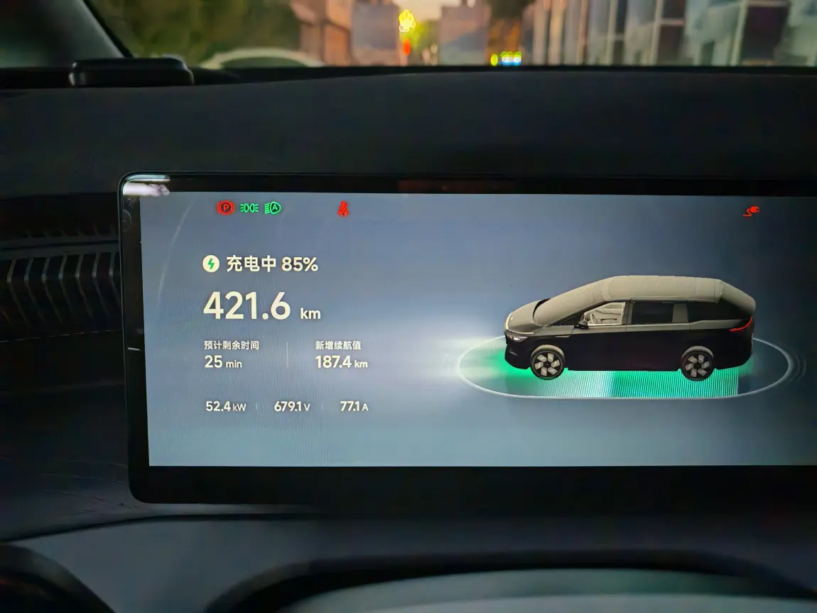 国庆假期,先从内蒙古鄂尔多斯自驾到陕西铜川,车上带着岳父,媳妇和2个小孩。到达市区在小鹏超充充满。车位6个。可能因为有占位费,车位空余很多,还有其它品牌的车去充电。第二天实际上是满员,有岳父母和小姨子,自驾到陕西安康地区的鬼谷岭景区。玩了之后中午在石泉古镇去吃石锅鱼。随后去后柳水乡码头。再返回安康市住宿。夜景是安康市汉江。第三天去了瀛湖景区,船票超值。各岛之间,坐了好多次船。玩的很开心。