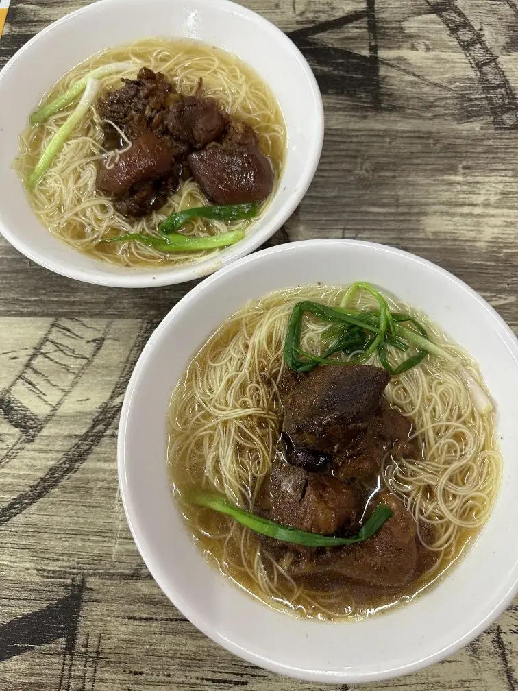 江门城区的发源地,整片街区特别具有年代感,建筑以骑楼风格为主,走在路上有种穿越感,拍照自带复古风,因为是《狂飙》取景地,这里充满狂飙元素,随处可见"强哥""安欣""大嫂"的人形立牌、"强盛猪脚面"的店铺,我们在徐记面馆品尝了强哥安欣同款猪脚面,猪脚味道还不错,但是面也太细了吧。