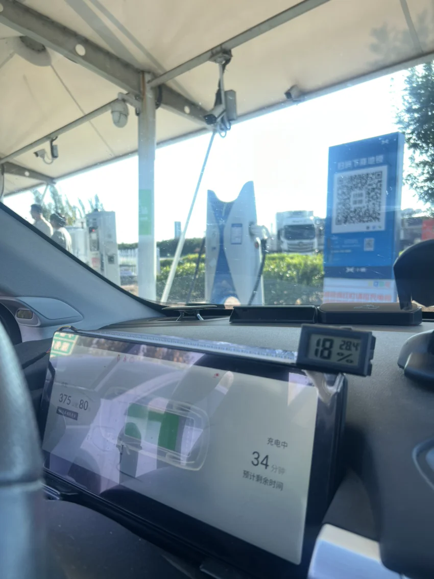 感觉续航有一点撑不住了,半路在张家口下去充了一点电,顺便认识了一位车主(g3i,70多岁了一位阿姨,我教她怎么用她女儿的主账号,在合作免费电站上面充电)