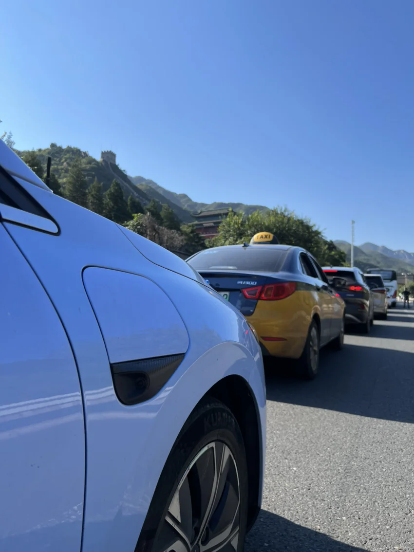 一个多小时电充满,逛完以后就出发了,走的是八达岭高速,然后比较堵车。但是顺便也瞅了一眼长城。