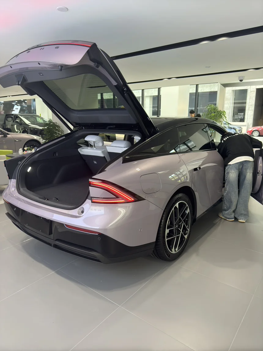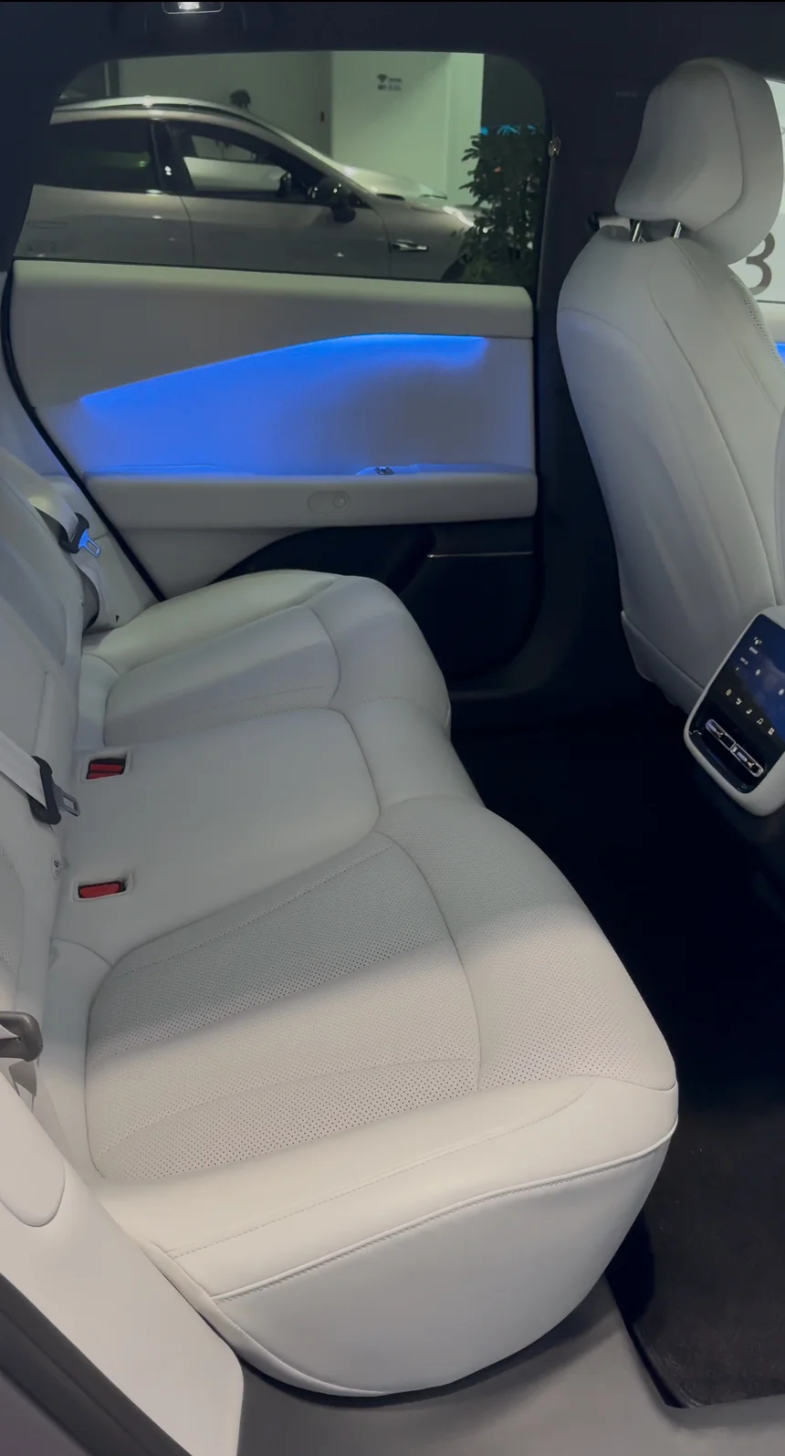 #小鹏P7+实现前后排二郎腿自由# P7+ P7家前天去体验之后就一个字:大,空间非常巨大,本人身高173,靠背放倒最后头部还有一拳左右距离,调到最前有一拳多两指左右距离。前排我的正常驾驶坐姿,后排坐着,我的大腿到前排座椅背竟然有半个小臂这么长你敢信??大约三拳左右距离,妥妥二郎腿自由,即使前排座椅调到最后,我的腿部空间也有一拳的距离,并且靠背可以大角度调节,坐着很舒服。让我印象深刻的是后排中间的位置,填充非常软和饱满,是我坐过所有车里最软最舒服的!如果我坐这个车我甚至会主动坐到中间位置!😍后备箱空间不放倒也很深很宽,放倒后更是如此,我躺在里面可以完全把腿伸直,并且尾门上一两处磁吸点并且可以使用12V180W电器,妥妥露营神车!