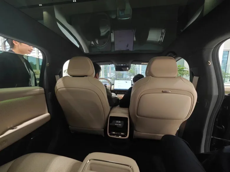 车内垂直高度接近一米。为了让大长腿坐在车里也不憋屈,车辆搭载了厚度109mm的800V电池包,再加上CTB车身电池一体化技术,车内的垂直高度达到了973mm。