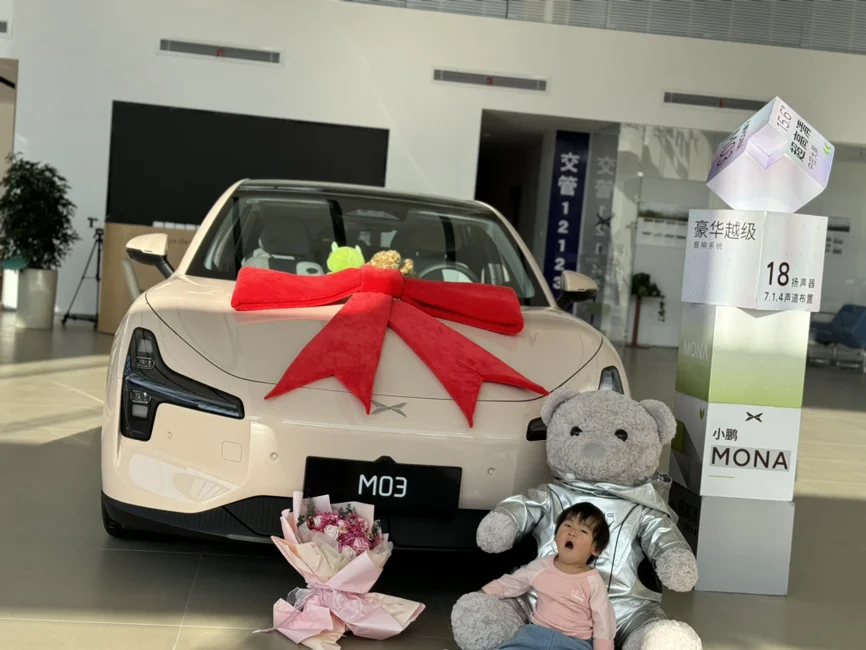 米白色的外观赋予了温馨与浪漫💕简而不凡的内饰谍照着年轻人慵懒的内心,自动泊车技术🅿️谱写着科技与艺术的碰撞💥红色的蝴蝶结🎀增添了一份新鲜与喜悦😀按耐不住的心切再次同屁股与mo3的摩擦,一年没洗的脚丫🦶再次踏上了03的油门,没见过世面的我,轻轻试探着拨动那修长的怀挡,我真的好想一脚油门踩上回家方向🧭的高速,感受一下那传说中的速度与激情❤️🔥哎😑可是我那睡眼惺忪的娃娃她哭了,她哭了,还有那胖墩墩的老公他说他晕啦他晕啦😵💫还是一个掉头回到现实的小鹏mo3的销售中心吧……今天的分享就到此结束吧,亲爱的“鹏”友们我们明个再会👻