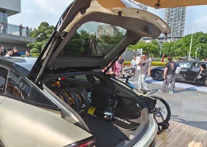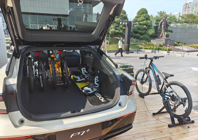 小鹏P7+的后备箱设计考虑到了实用性,采用了可扩展的设计,使得在需要时能够容纳更多的物品。具体来说,小鹏P7+的后备箱在二排放倒的情况下,拓展空间非常大,能够容纳大量的物品,包括自行车等大件物品