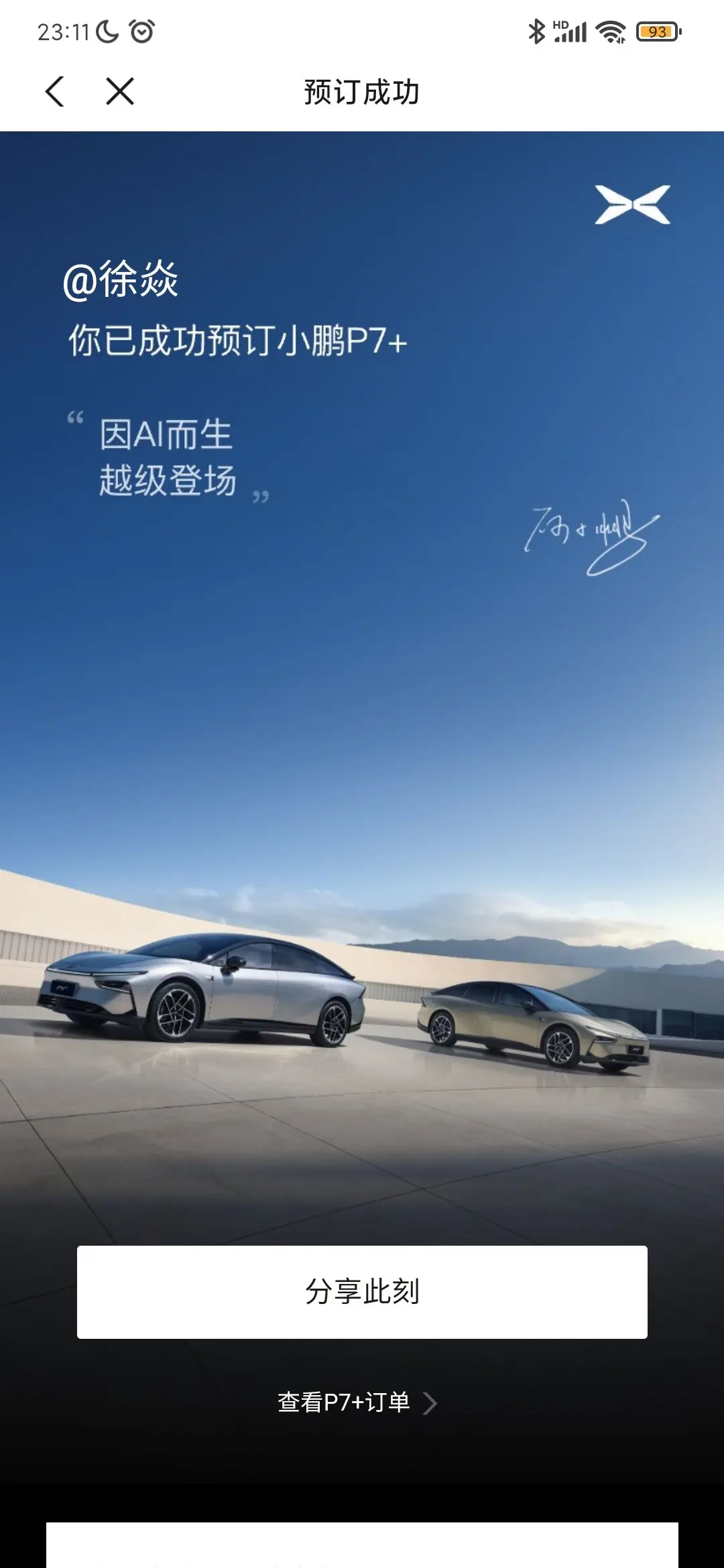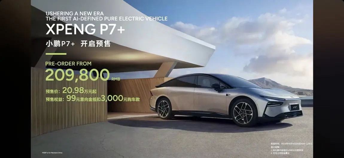 就在今天,小鹏在巴黎发布了P7+的预售价格20.98万元起,加上预售权益99元抵3000元购车款,对去年盲订G6的我来说真香!