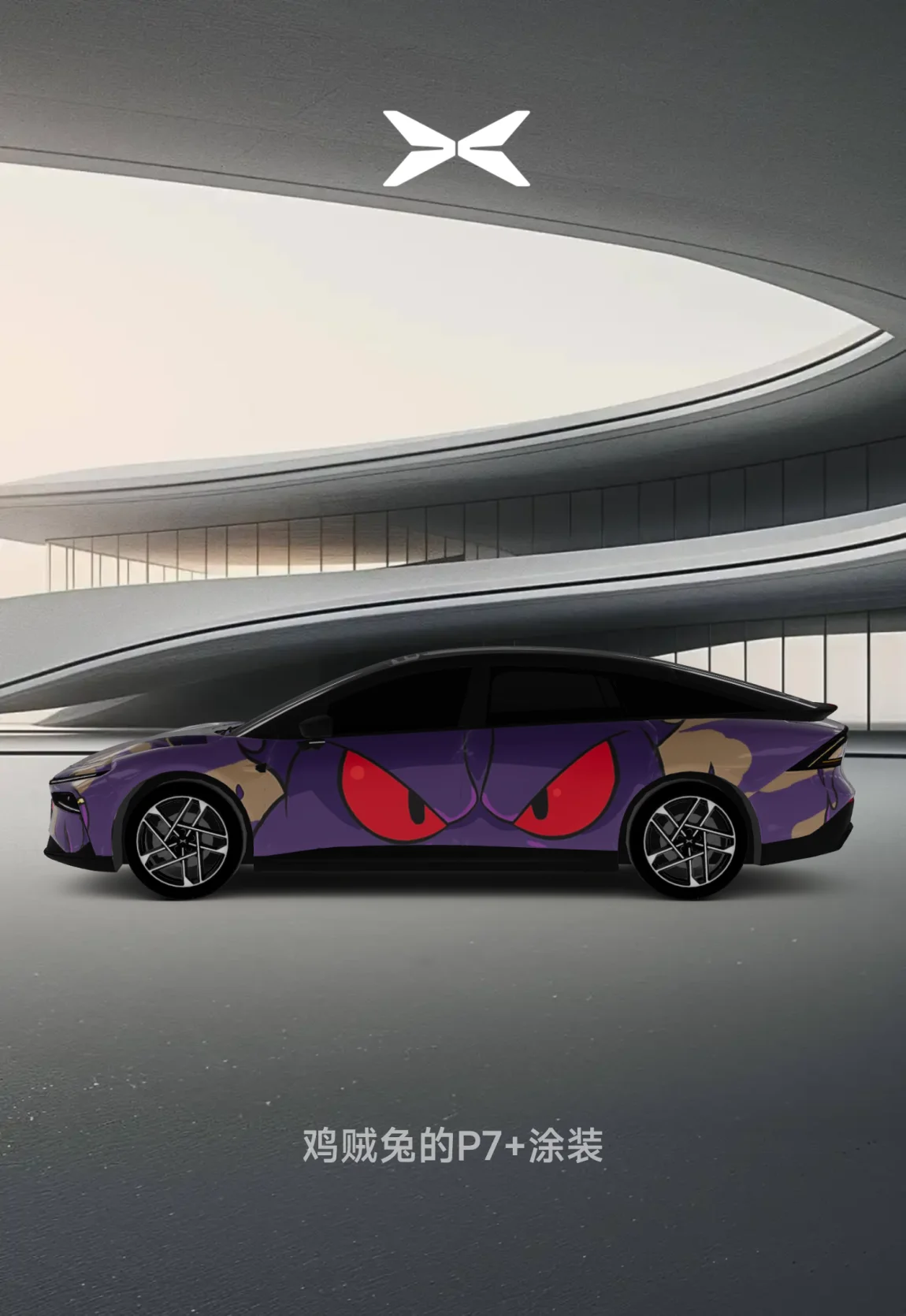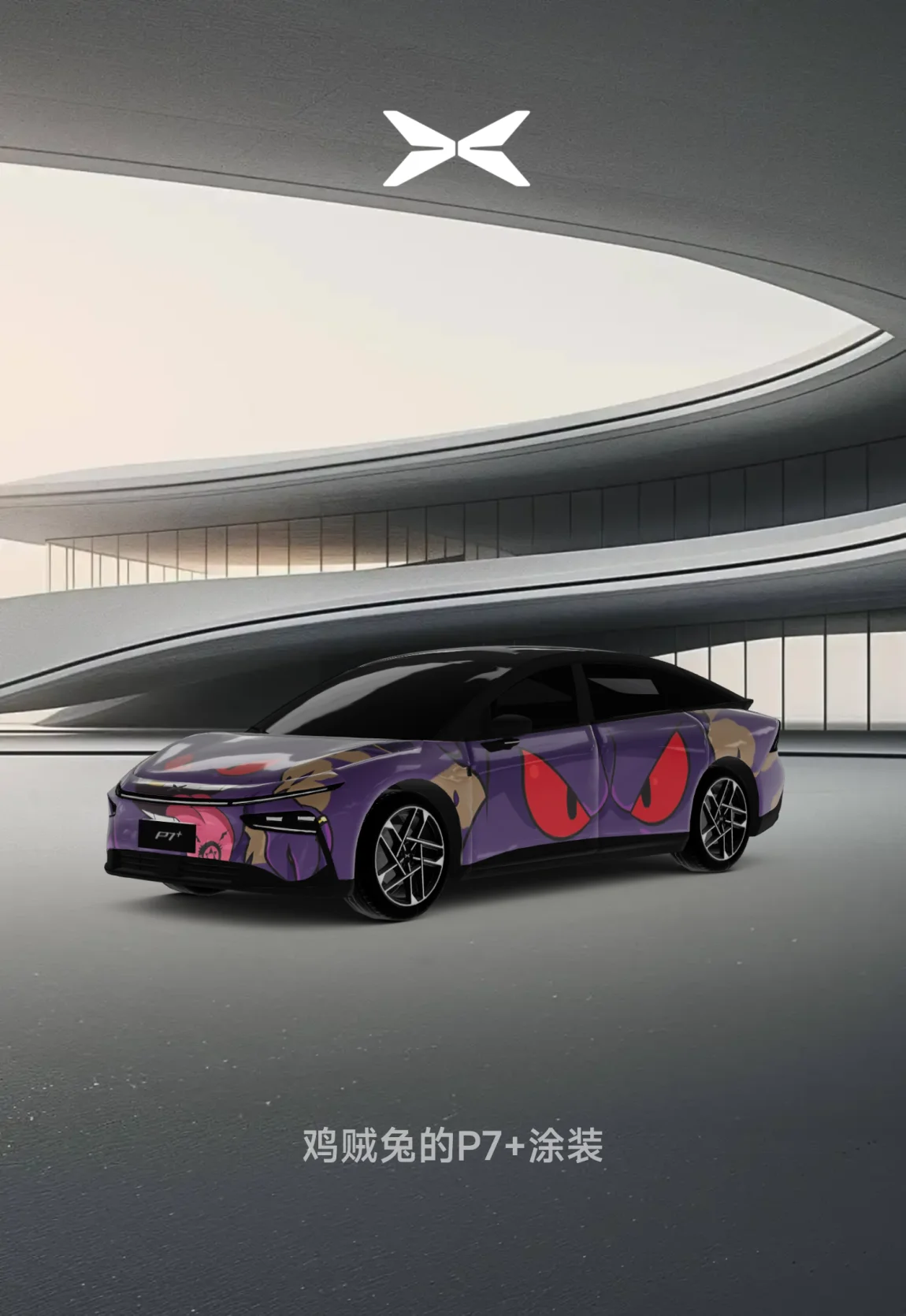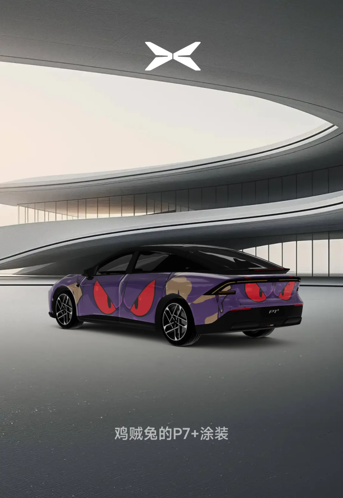 小鹏P7+的耿鬼配色,非常的帅气逼人了,每个面都有耿鬼的大眼睛👀。