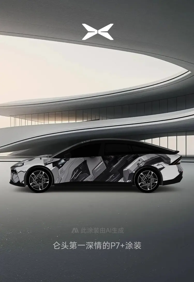 此外,车轮毂可以设计成类似星系的图案,每一条轮毂的辐条都像是星系的旋臂,不仅增强了车辆的科技感,也让人联想到小鹏P7在智能驾驶领域的探索与创新。这样的个性创意搭配,无疑会让小鹏P7在众多车型中脱颖而出,成为科技与美学的典范。