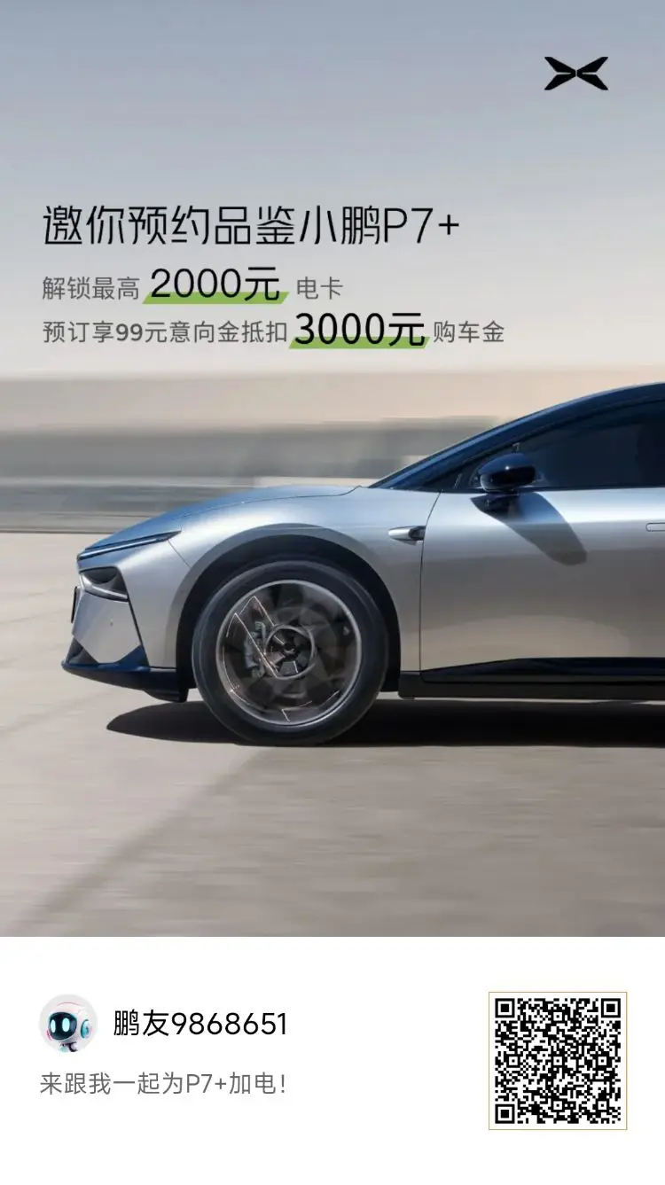 全球首款AI汽车小鹏P7+准备和鹏友们见面啦! 10月10日起,小鹏P7+展车将陆续抵达全国各大门店,诚邀你到店开箱,深度了解全新车型,品鉴AI科技与智能。 AI智驾、舒享大空间、有趣又智能的AI小P......更多惊喜欢迎你第一时间到店解锁! 👪活动对象:全国范围内小鹏用户 ⏰活动时间:10月10日 15:00-P7+上市日 💡活动平台:微博、小红书、抖音、B站 📌活动要求: 带话题#小鹏P7+全球首秀#发帖,分享你在门店体验小鹏P7+时的探店故事或惊喜发现,即可解锁活动福利。(可咨询当地小鹏门店获取最新展车到店进度后再前往) 1.图文发帖:字数≥50字,需与P7+相关;图片≥3张,至少包含1张P7+车图; 2.视频发帖:时长≥20秒,需带字幕或口播讲解; 3.抖音、B站平台仅限视频参与。 🎁奖励规则: 将作品发布到微博、小红书、抖音、B站的任一平台,且符合内容要求,系统审核通过即发放奖励 奖励内容: “小鹏P7+真来电”活动累积300元电卡额度,电卡将于购买P7+提车后自动发放