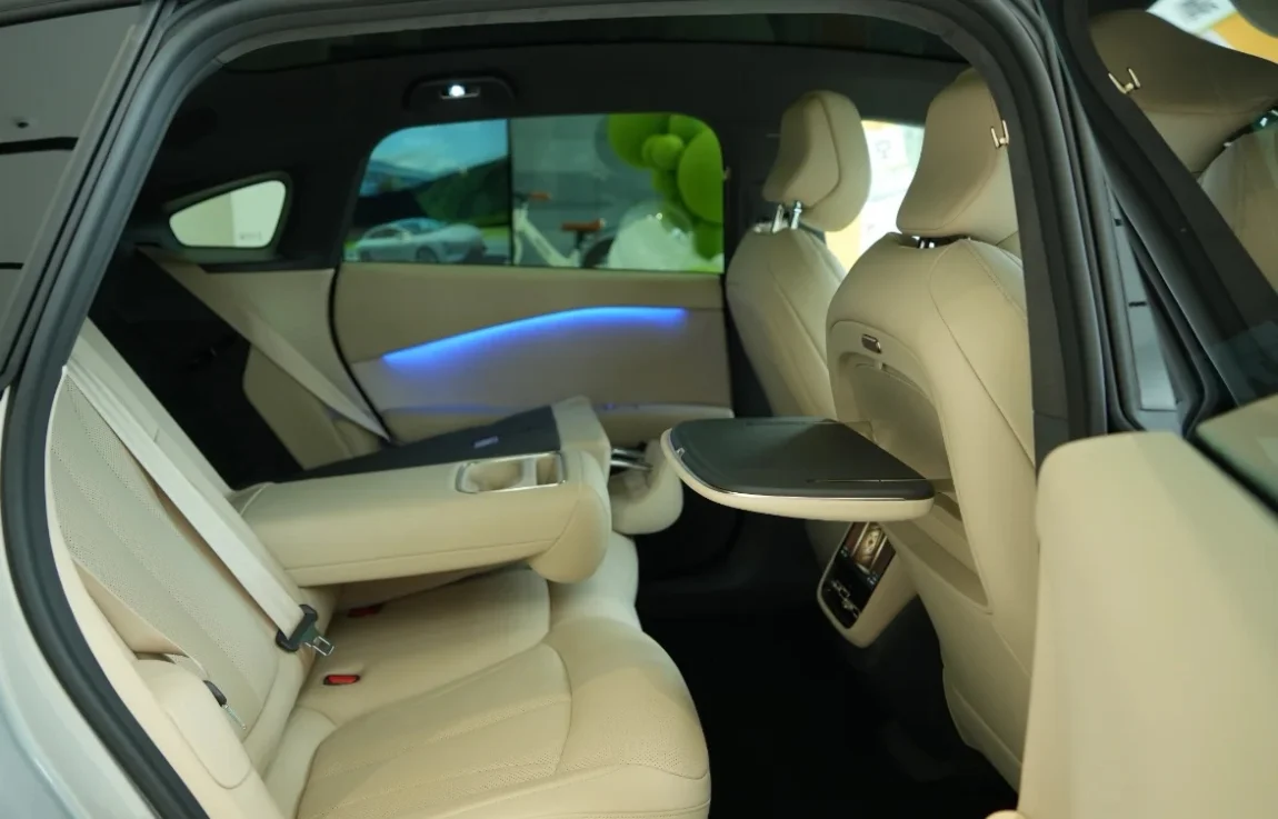小鹏p7+的空间好宽敞,轿跑颜值在线,豪华感,车门,氛围灯,紫色配色绝绝子,小桌板细节对后排很贴心,老车主羡慕。