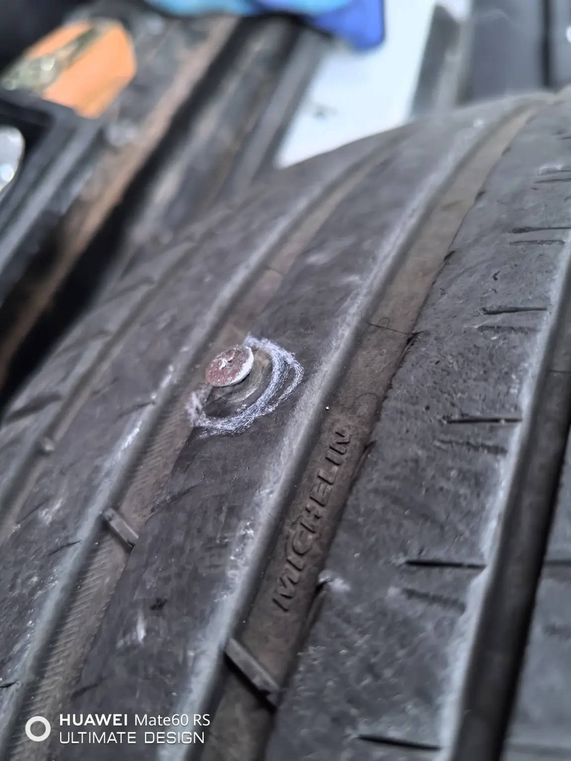 师傅说这种就不用去扩孔了,用那种小螺钉带胶的补胎钉简简单单解决了问题
