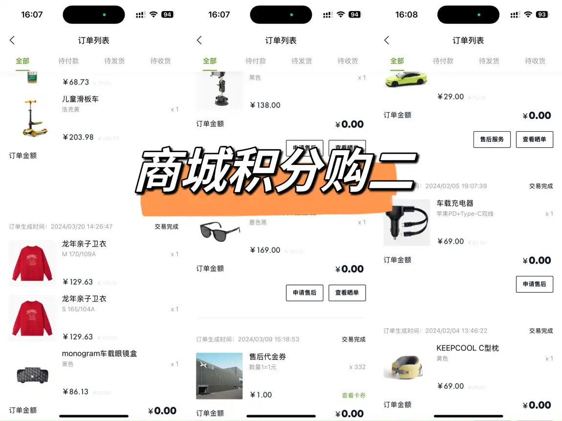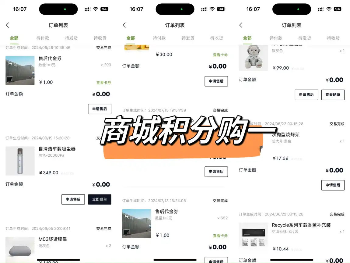 先看下我的订单吧,全是积分兑换的。城里的东西确实会贵一些,但是质量是真的好。这个买过的人应该都懂得。