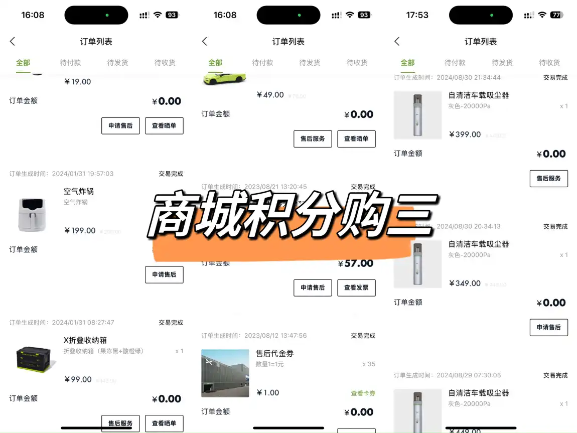 大小保养直接积分抵扣、衣服裤子直接积分抵扣、吸尘器空气炸锅直接积分抵扣、墨镜行车记录仪直接积分抵扣,还有很多很多...不一一举例了哈。(吸尘器买了4个,送人巨好用)👏👏