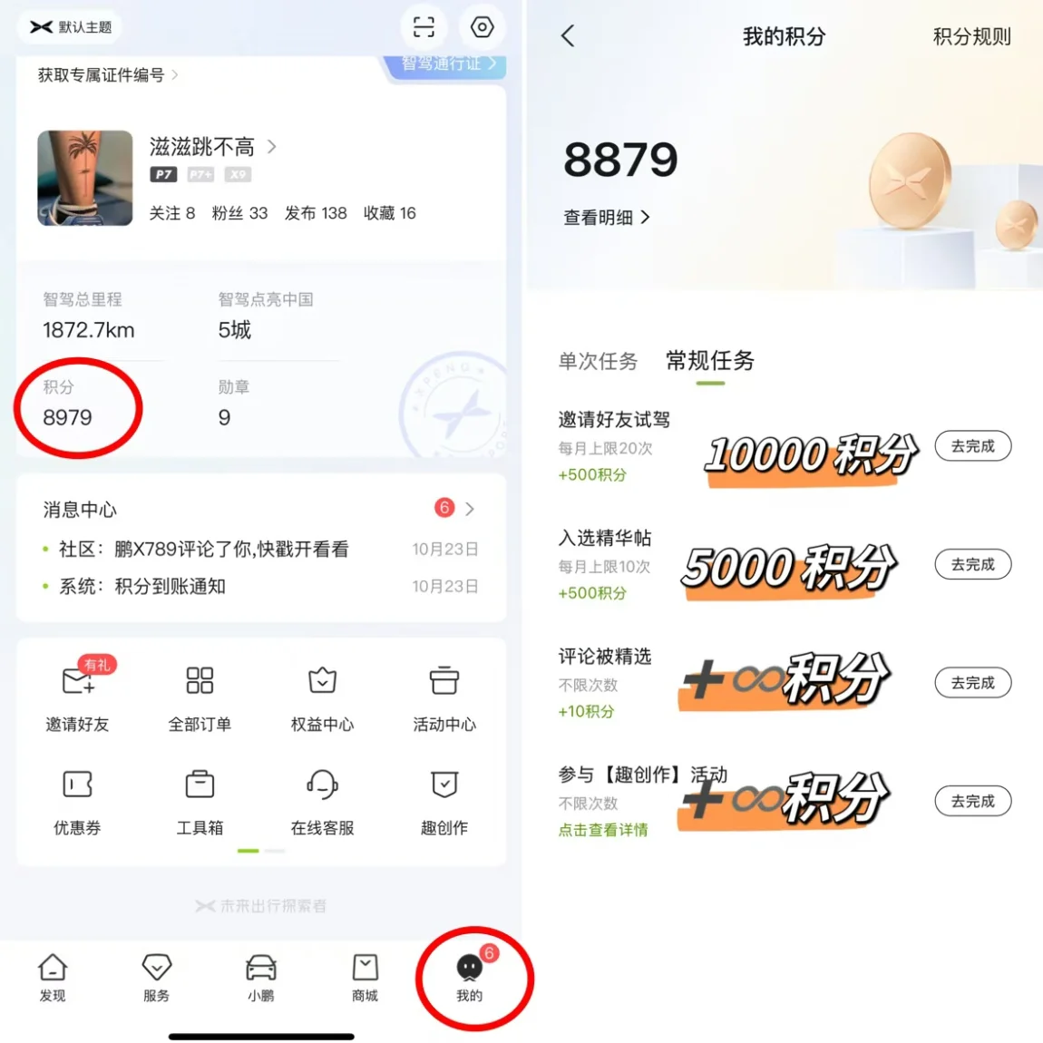 鹏友们,作为小鹏车主,是否有过这样的困扰?打开小鹏App,看见小鹏商城里玲琅满目的各种商品都想买?每次去保养时因为没有积分,只能真金白银付钱?所以,接下来给大家总结下社区赚积分,努力实现积分自由✊✊。