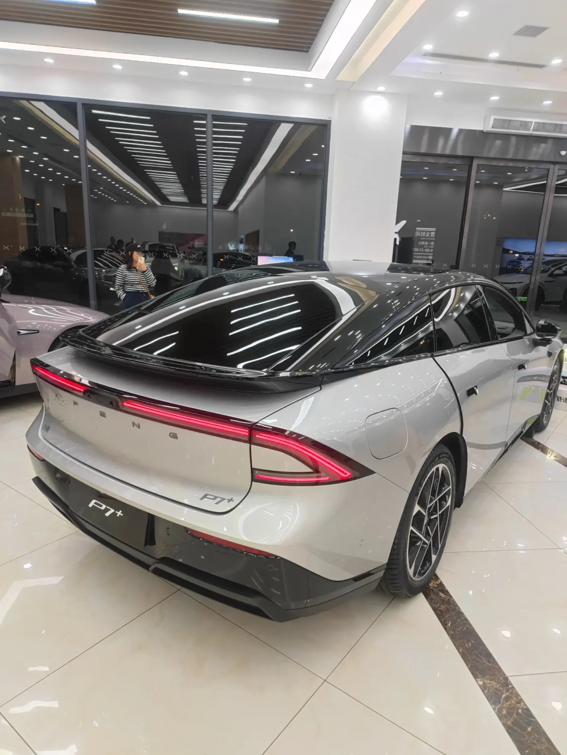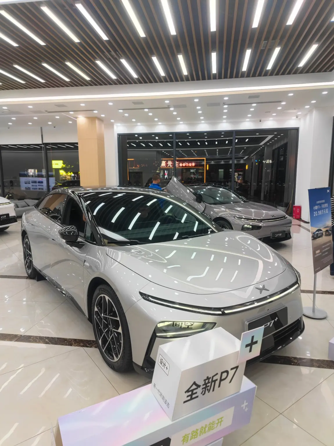 #小鹏P7+全球首秀# 中午没事,去门口的4S店看了看小鹏P7+,实车还是挺好看的,目前还没试驾车,静态还是挺好看的,给我的最大感受就是座椅很软,后排空间和后备箱都挺大的。然后音质很好,氛围灯也挺好看。