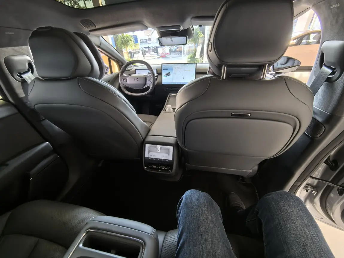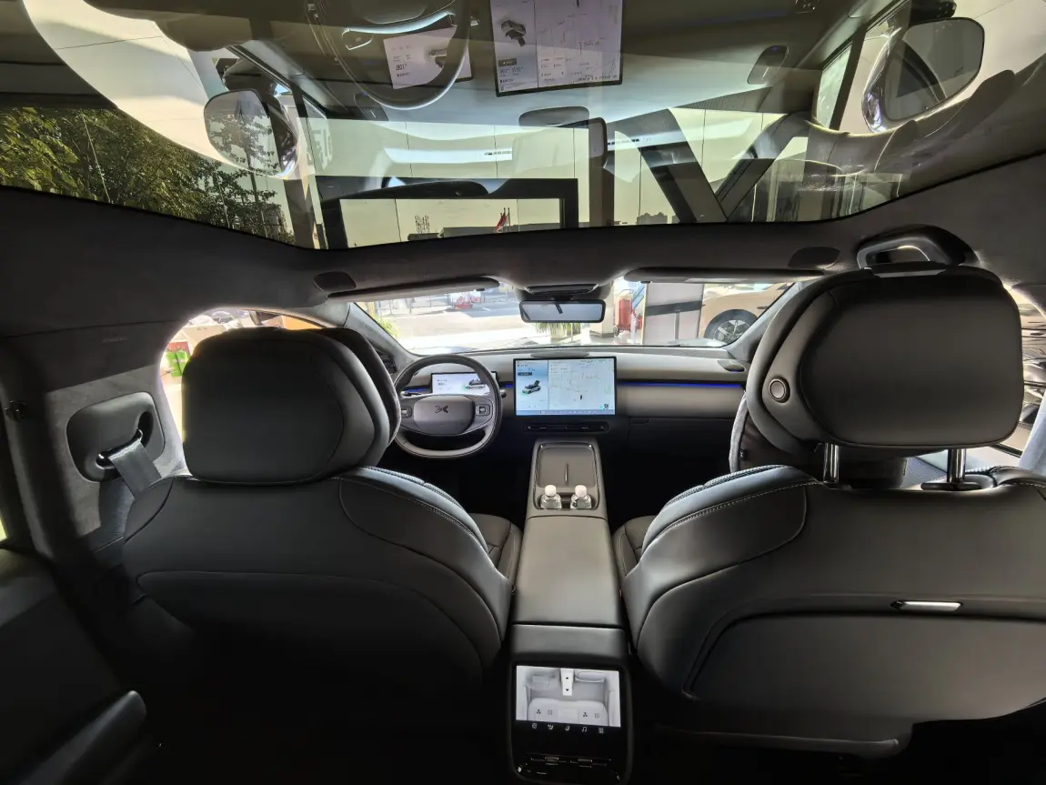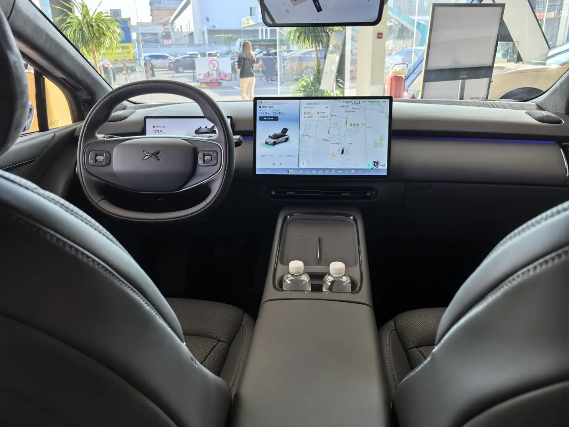 进入车内,整体内饰大面积由皮质材料包覆,红色氛围灯环绕车身,营造出简洁而富有科技感的氛围。新车配备15.6英寸的触控大屏和10.25英寸的仪表屏,内置高通骁龙8295芯片,搭载XOS天玑车机系统,呼叫“你好小P”即可实现4音区的语音互动,支持语音免唤醒、连续识别、可见即可说以及面部识别。这样的智能化配置,让驾驶过程中的操作更加便捷、安全。