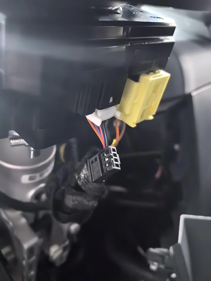 Mo3仪表盘今天终于安装上了,这里特别注意,10月份生产车连接线头是放在方向盘下面,安装师傅找的不容易,详见图六,后面安装朋友鹏友注意,图五是8月的生产的连接头位置,相对比较好找。
