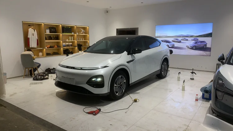 再后来就一路换第二个车斯柯达,第三个车拍的公务车别克君威,第四个拍的公务车哈飞赛马,第五个车高尔夫,到2020年有了自己的小宝宝,结果发现高尔夫后排座位装完安全座椅,我开车就得爬方向盘上,第六个车换了A6,到2022年,油价一路飙升,再加上也不需要去外地跑业务了,就拥抱新能源,第七个车换了埃安Y,空间大,又省钱,今年由于工作原因,要去外地一段时间,试驾了小鹏,智驾没的说,就决定把埃安置换了755max版,小鹏的智驾对我媳妇这样不经常开车的人来说,特别友好,城市智驾,特别是自动泊车用起来特别放心,提完车直接就在店里全套贴膜了。