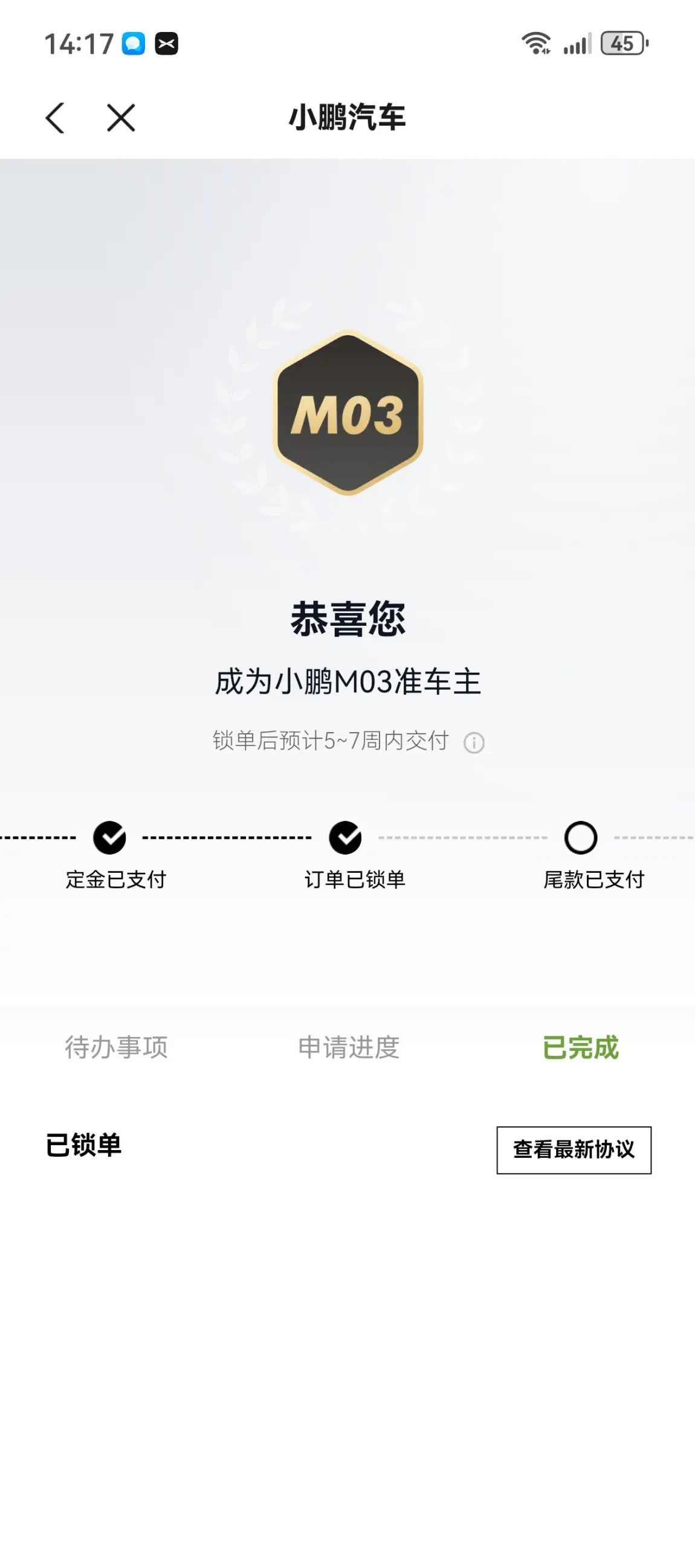 油车开9年了,今年打算换个车. 之前关注过豹5,试驾过哈弗猛龙,后来又关注领克Z10.直到8月初看到小鹏M03,我承认还是预售价格和颜值吸引了我,99元小定上.