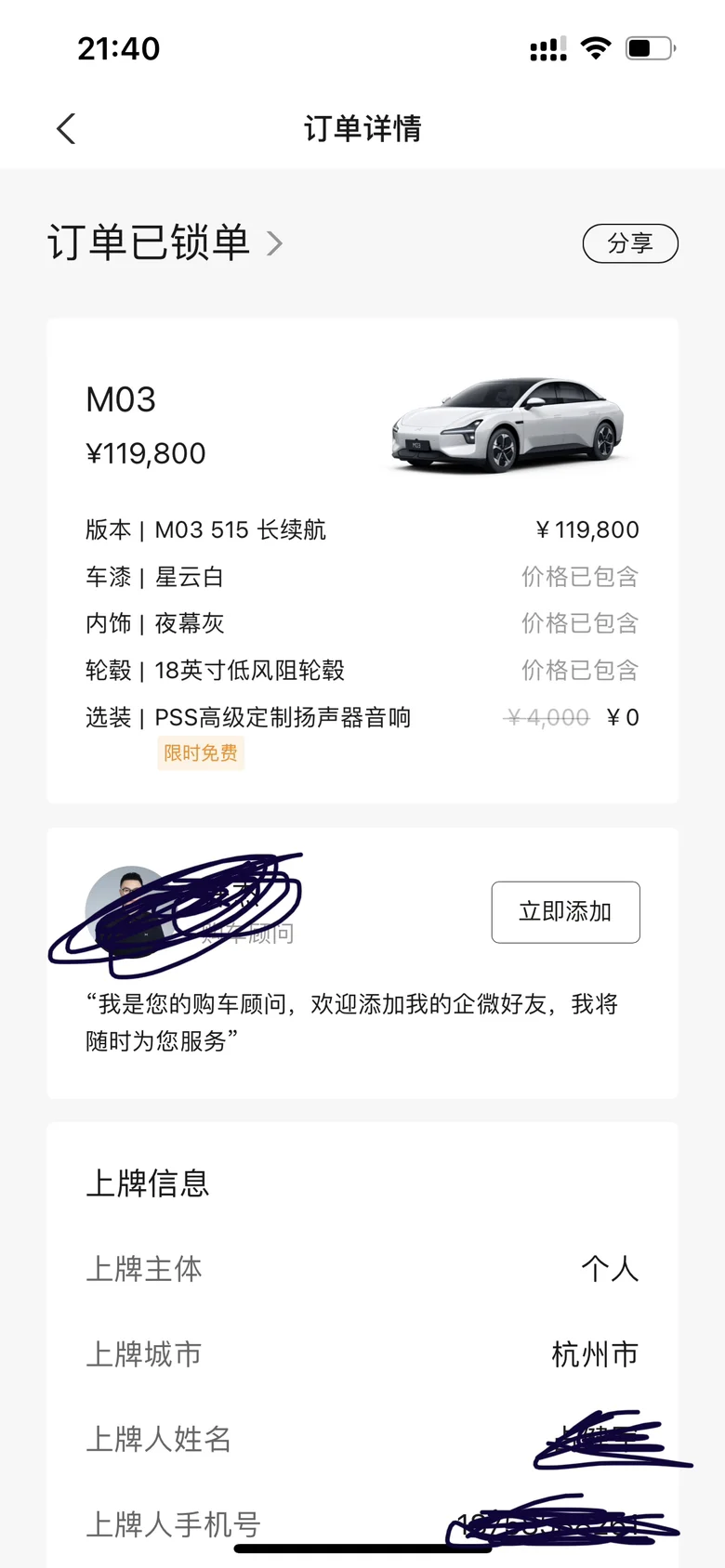 #晒小鹏MONA M03大定锁单# 了解到小鹏m03是在跟朋友一次交谈中,本就买车的打算一直在关注大众id3和别克e5,发现这颜值这价格,心动💕