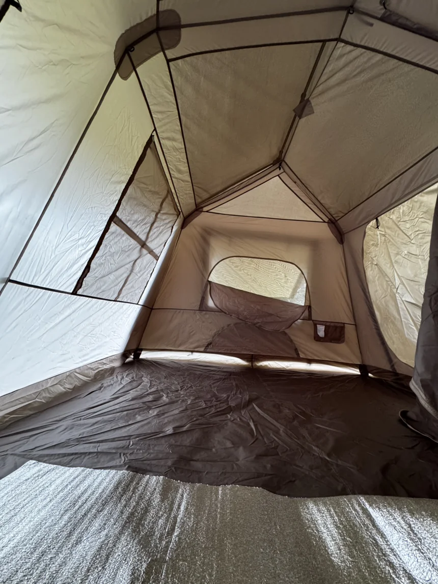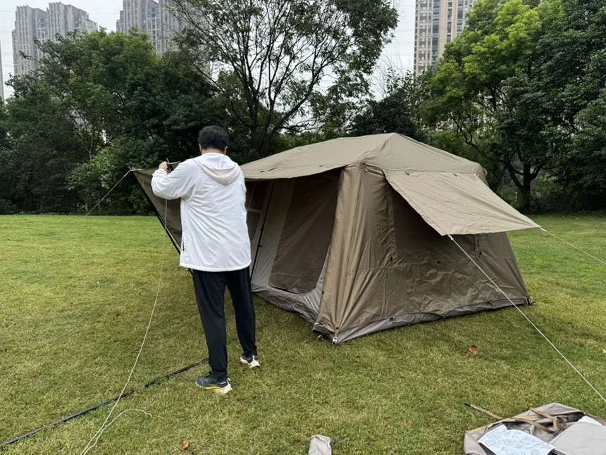 这次买的新帐篷足足有13个平方,5,6个人都可以宽敞地坐下聊天,也发掘了新的使用场景,比如可以再在帐篷里用投影仪看电视,再买一个充气沙发…
