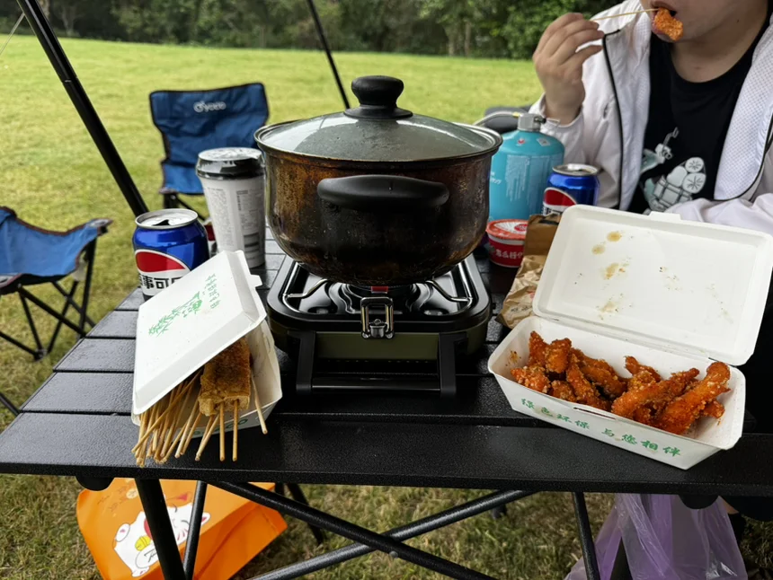 午饭用卡式炉烧了火锅,便携桌子地加持下这顿午饭吃着看看风景也格外惬意。