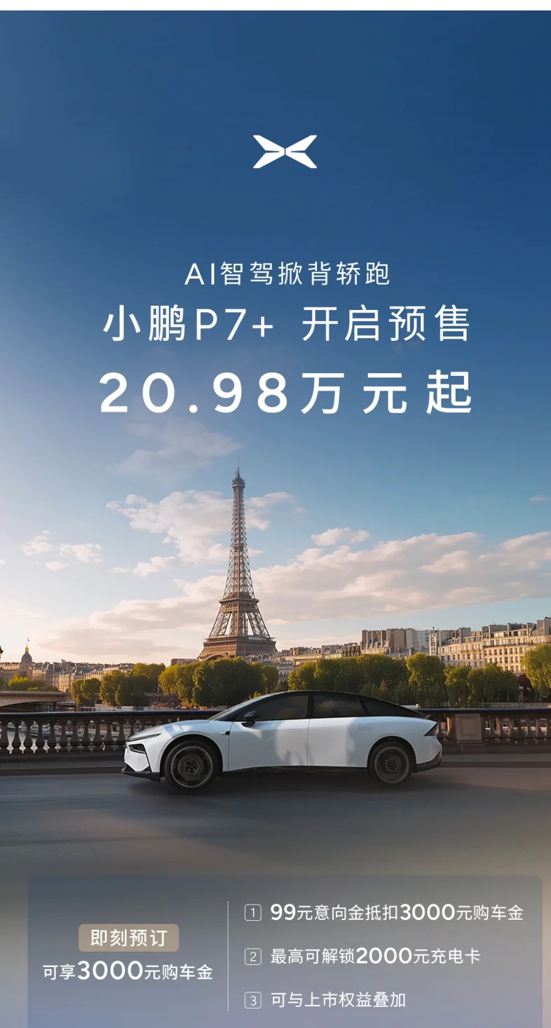 全球首款AI汽车小鹏P7+准备和鹏友们见面啦!10月10日起,小鹏P7+展车将陆续抵达全国各大门店,诚邀你到店开箱,深度了解全新车型,品鉴AI科技与智能。AI智驾、舒享大空间、有趣又智能的AI小P......更多惊喜欢迎你第一时间到店解锁!