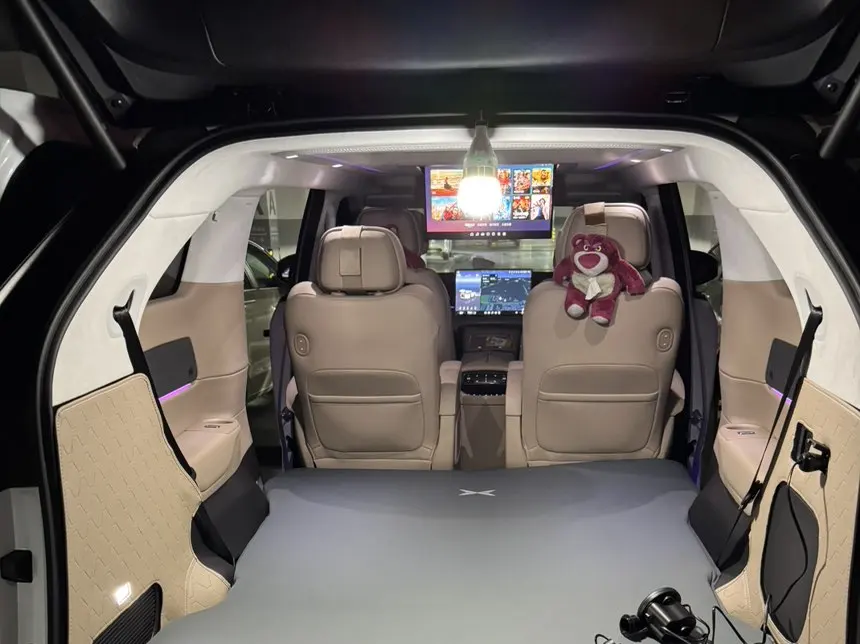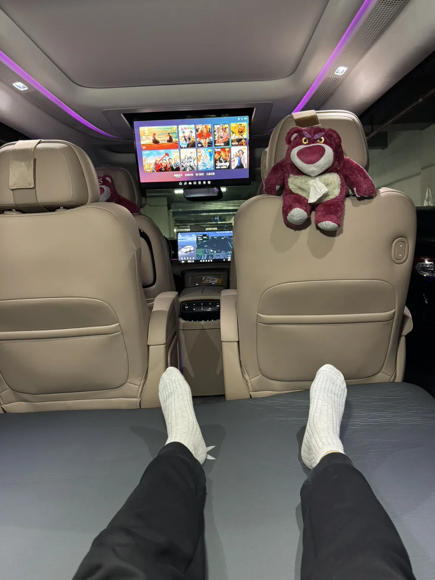 实际使用确实没错,二排坐车+吃东西,三排睡觉+看电视(实测小朋友三排中间看电视角度更好),如果能出个零重力过道版就更好了