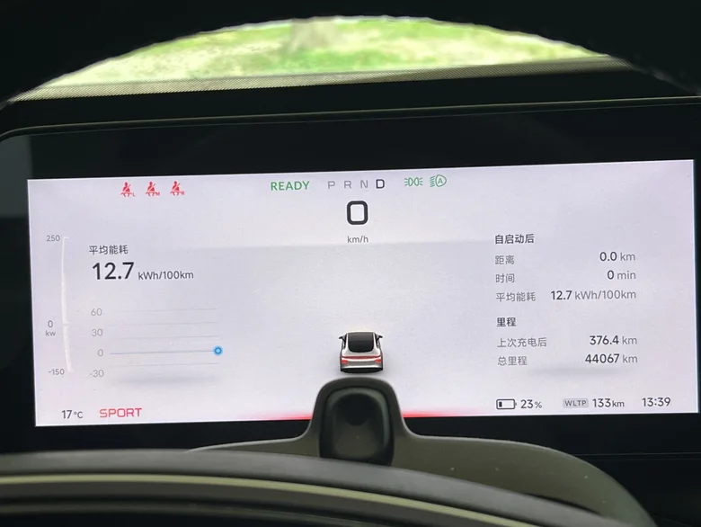 表显续航消耗385公里,实际行驶376公里,续航达成率97.67%,春、秋季节对电车续航太友好了