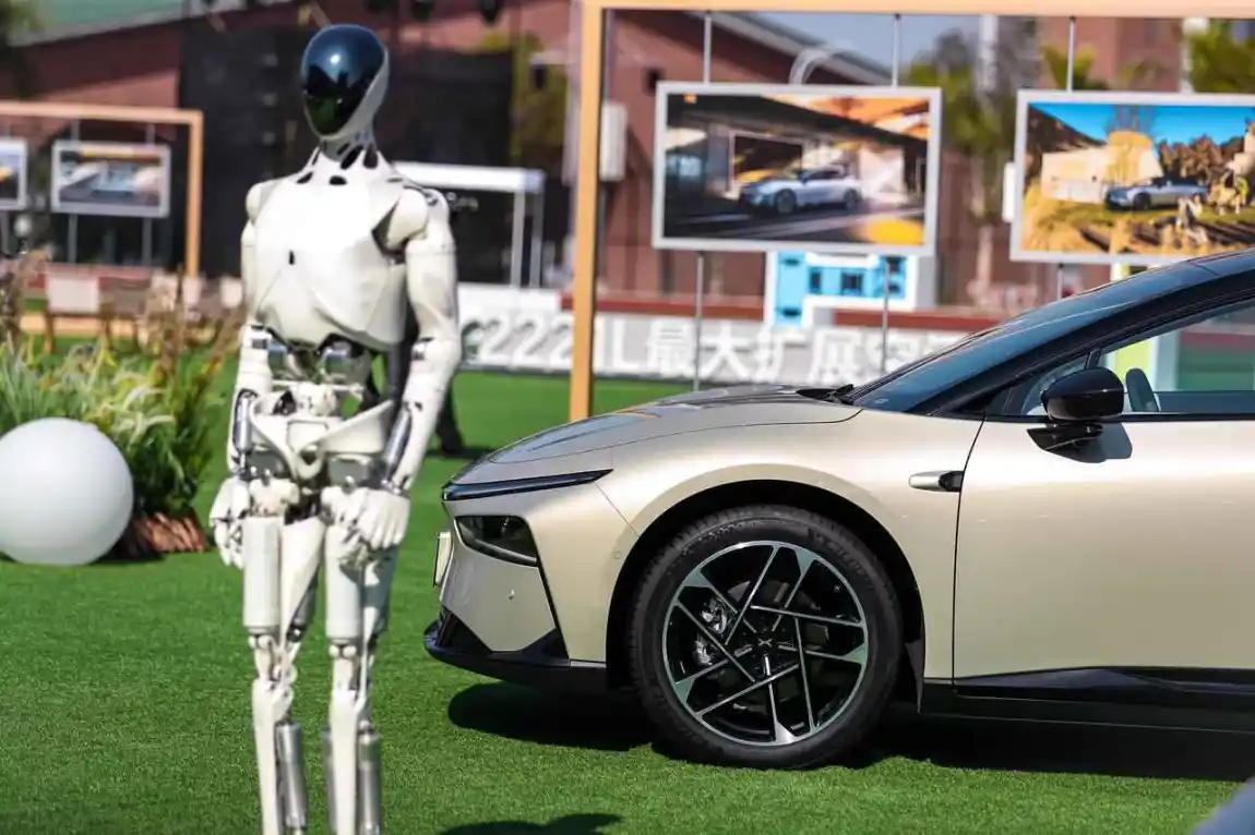 XPENG Iron人形机器人与小鹏P7+的梦幻联动,发布会户外场地炫酷升级!