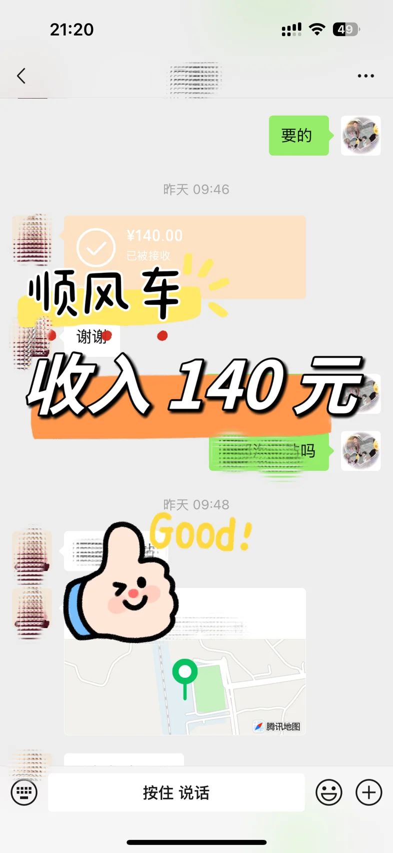 回城时,正好拉了一位顺风乘客,车费 140 元,算是补了单程的通行费吧。