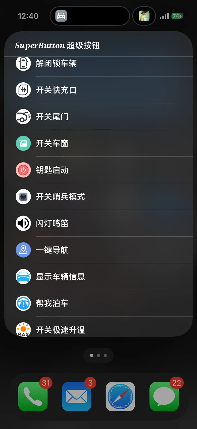 抽空改了个超级按钮,配合iPhone侧边按钮,化身小鹏车控按钮,随时随地呼出,方便很多