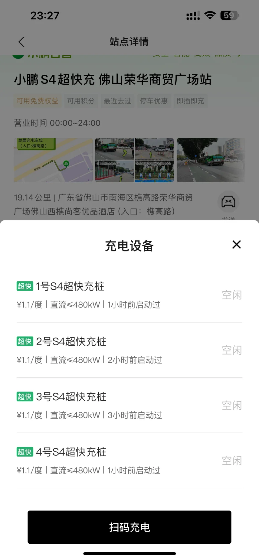 距离西樵山景点最近的小鹏S4超充站——佛山荣华商贸广场站(仅4.5KM)我是从鹤山出发,距离西樵山景点约50KM,因为是家庭出行,带着小孩,出游时间比较紧迫,一天来回。我是早上出发刚好到了午饭时间,途径荣华商贸广场。这个广场的位置比较靠近西樵山,而且有小鹏S4超快充,拥有4个S4超快充桩,最重要是充电不用排队,我沿途搜索了周围的充电站和酒楼,只有荣华商贸广场的超充站最合适最便捷了,一家人在这里就餐了,因为担心就餐时间长,避免占位费,我决定饭后再充电,最后再出发。这里的位置非常棒,衣食住行都非常方便,广场内除了有小鹏S4充电站,还有西樵海鲜舫,还有尚客优品酒店……可满足大部分人出游。