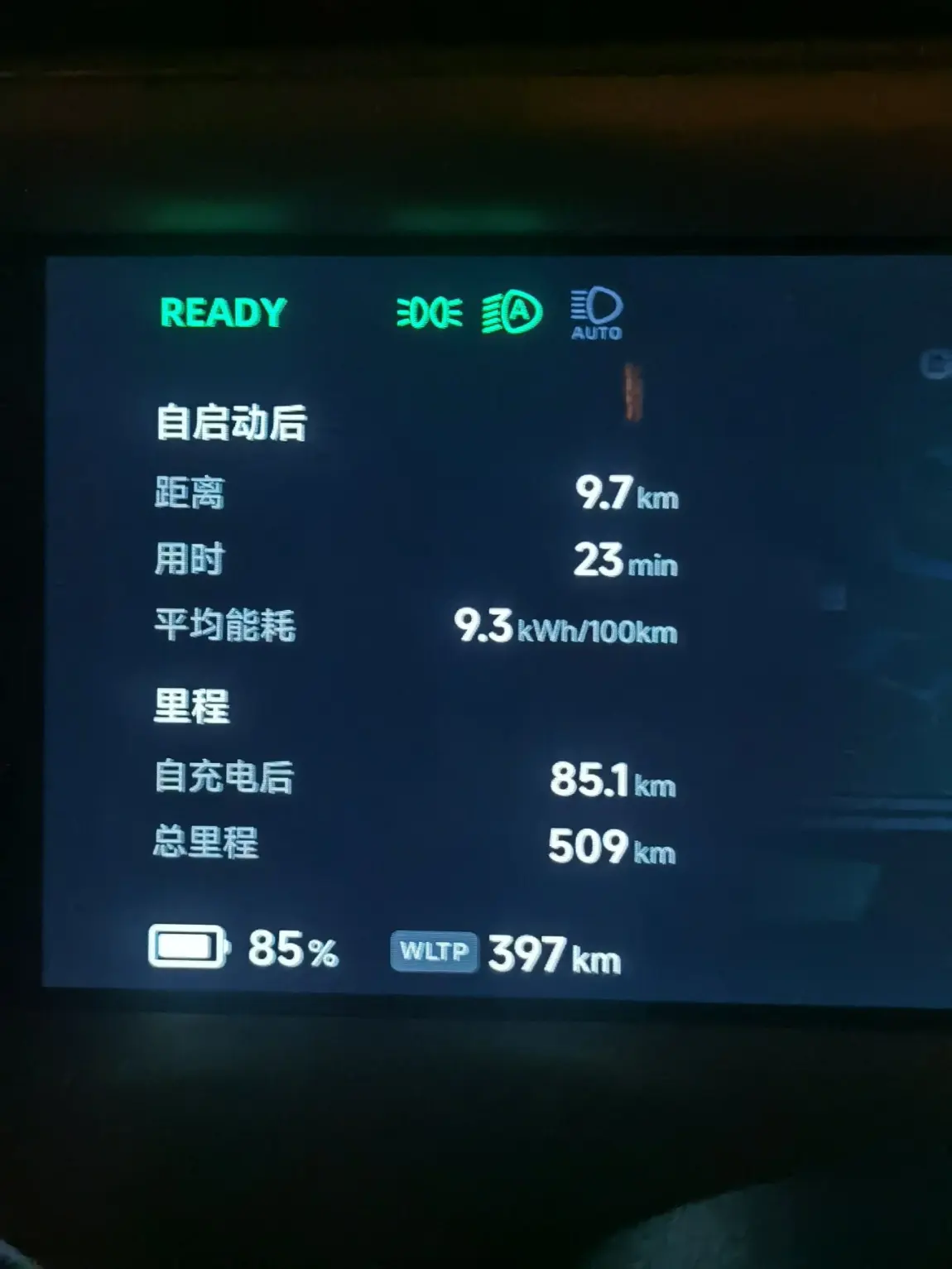 今天电耗降到10度以下了,自己开的 没有用智驾。