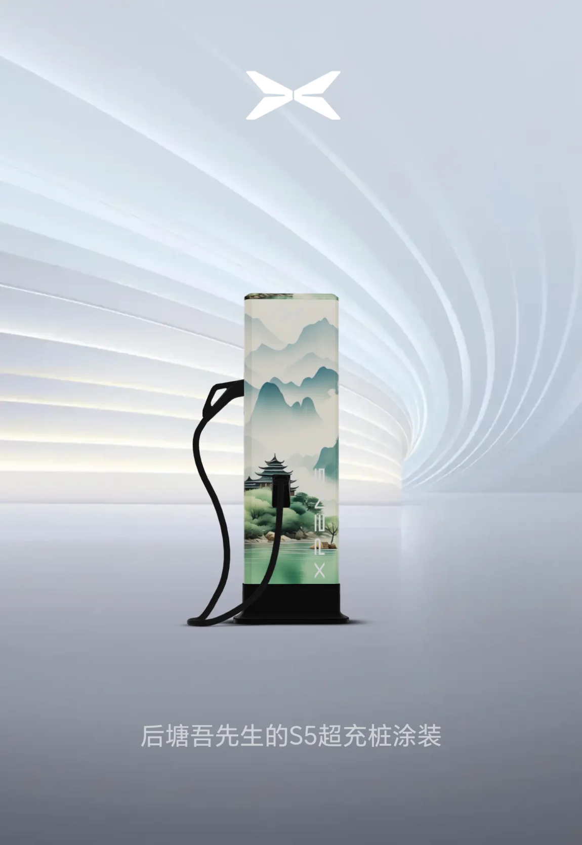 水色山峦,唯美充电桩。
