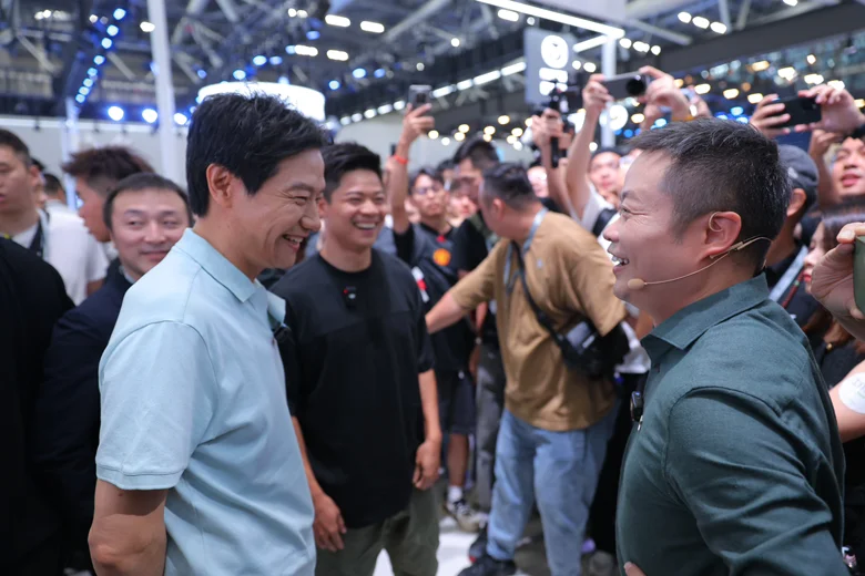 就在昨日广州车展上,雷总携苏炳添一同探班小鹏展台,并一起坐上P7+的后排,相谈甚欢!真不愧是“两小无猜”!就连主办方也是相当懂流量的,安排广州车展的最火场馆17.2号馆小米、小鹏、乐道、埃安等等在一个馆!两位大佬见面,洋溢热情幸福的微笑!