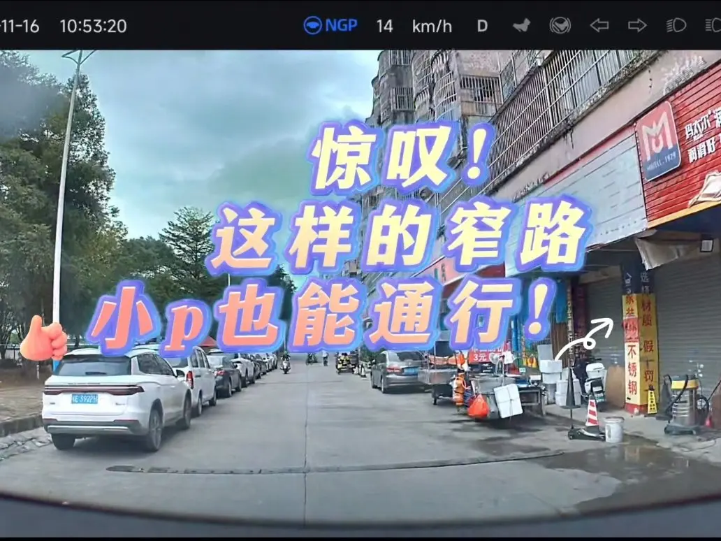 与X9略微宽的车道上行驶,小p也能做到精准控距,成功通行,现在窝鹏智驾,真的是无限NGP,有路就能开,不管大路还是小路,小p探测能够通行的,就必将能通行,太厉害了!@鹏友大管家 @社区活动小姐姐