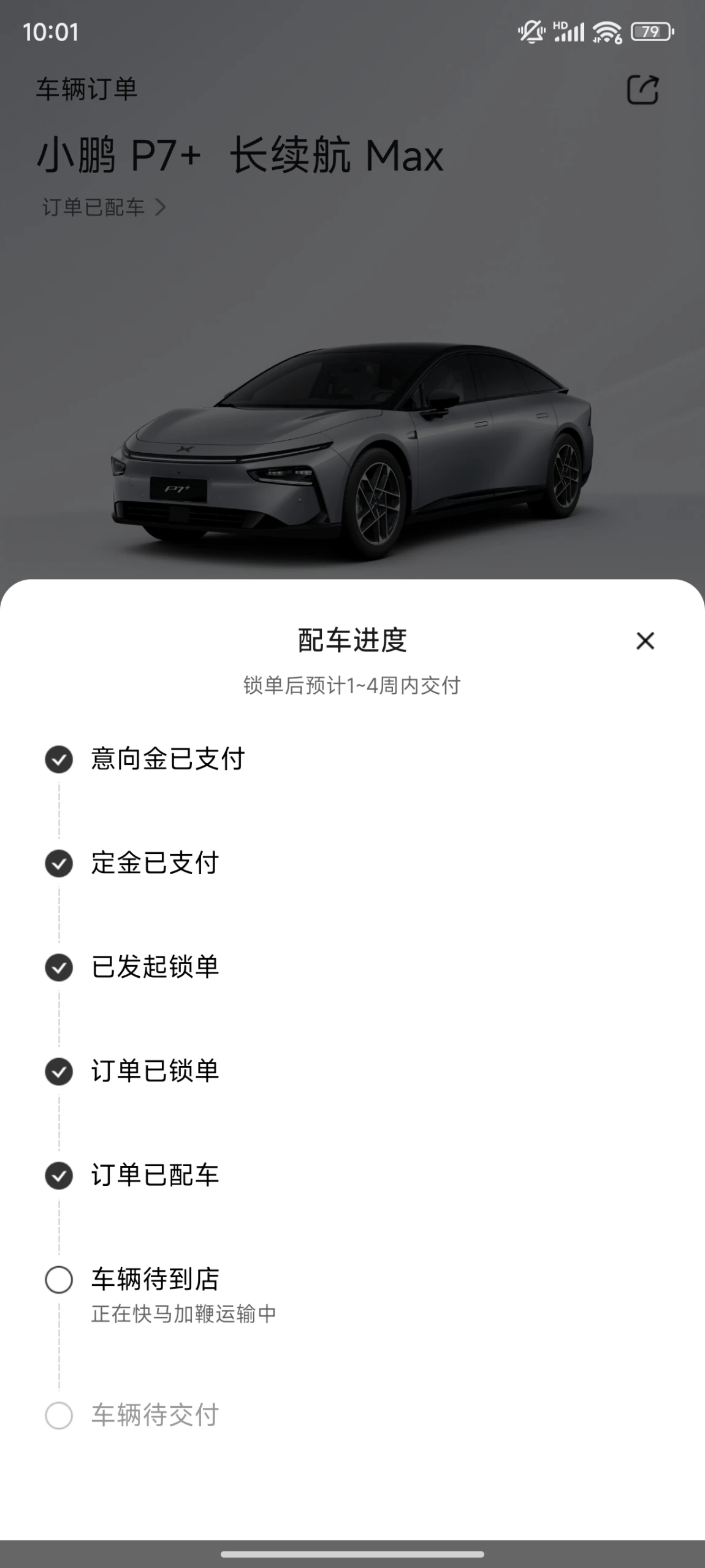 - 价格角度:小鹏P7+起售价低至18.68万元,我选择18.68版本+20寸轮滚,在同级别车型中性价比高,对比多个品牌,同价位没他好、同配置比他贵,妥妥六边形战士,外观大气。从订车到提车只花了10天!