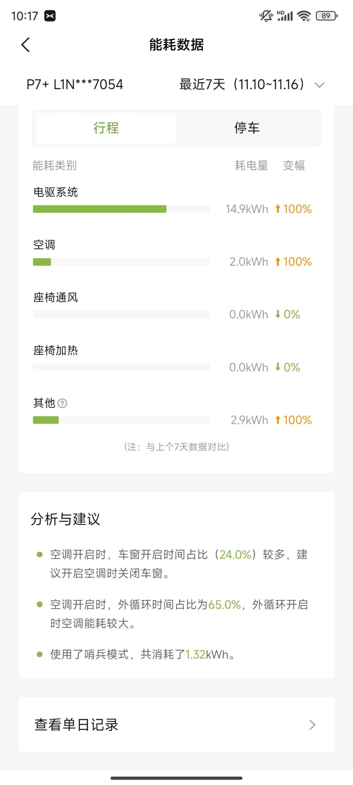 - 电耗:2024款小鹏P7+长续航版本百公里耗电量是12.4kWh,开了139.4公里。