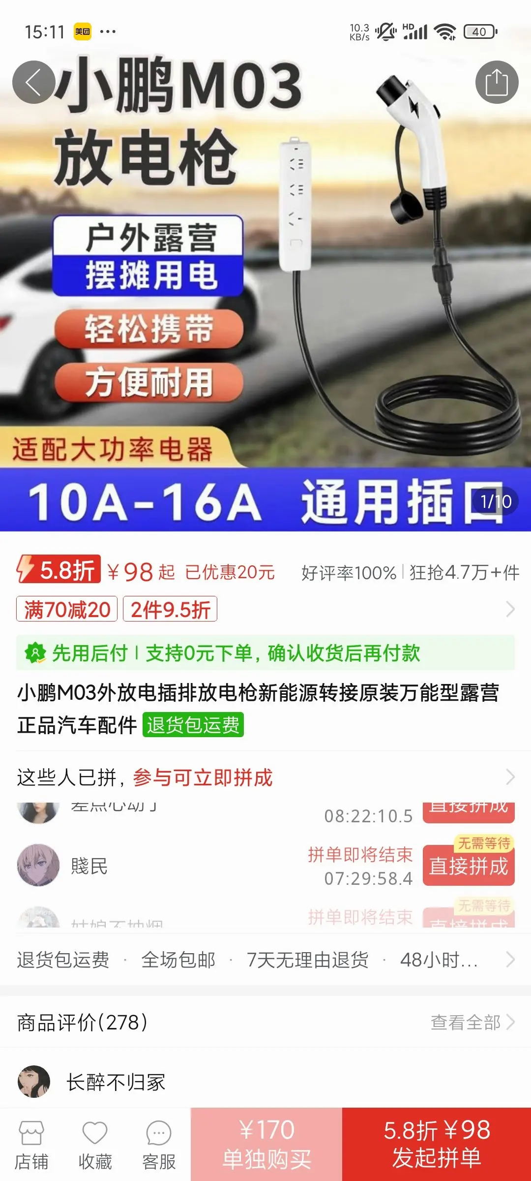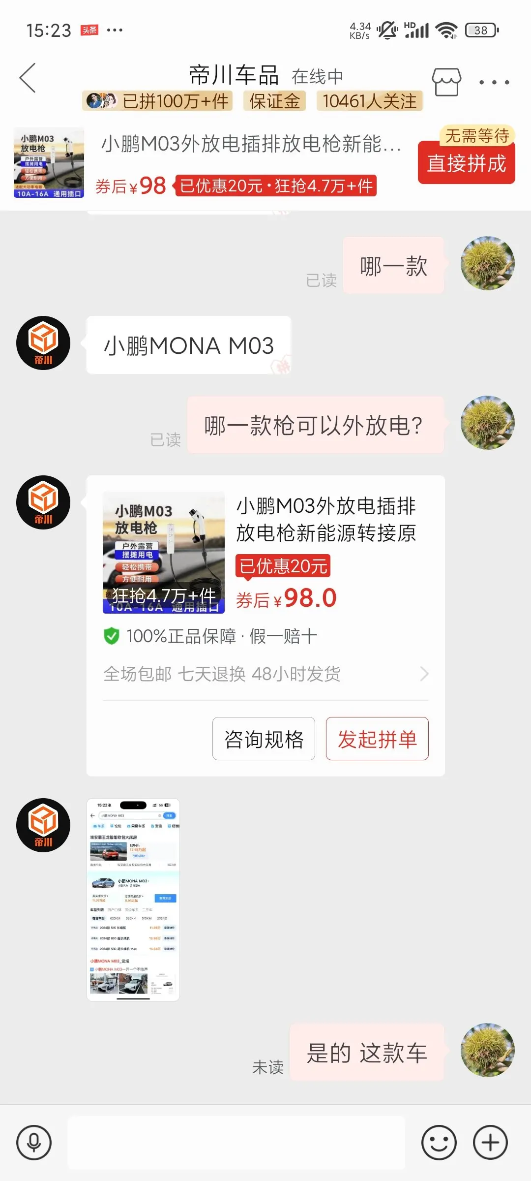小鹏M03到底支不支持外放电啊!客服说可以,跟他确认了他还是说可以。