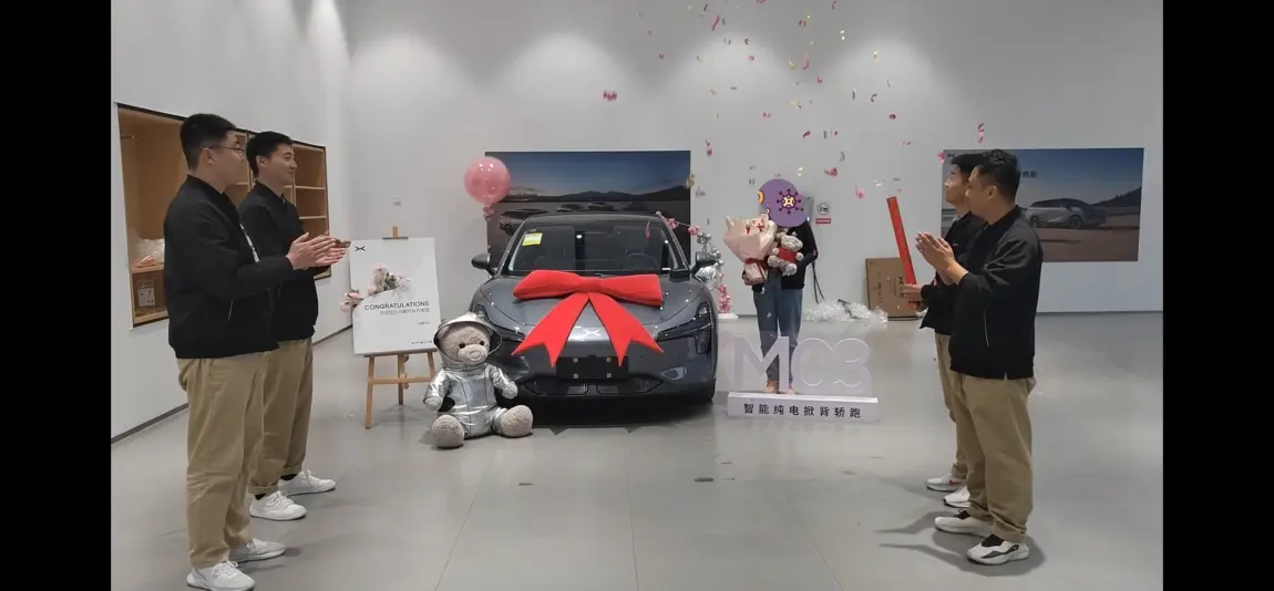 #我的提车作业# 在下定小鹏MONA03前,先去试驾了毛豆3,又去试驾了MONA03,感觉内饰简易有很多同样的设计理论,也比较喜欢MONA03设计外形。家里有2两辆车,拿其中一台进行置换,给老婆开,十万多就能感受二十多万的驾驶体验,就选定了MONA03.我是10月最后一天提的车,提车流程还是挺顺利的,到提车中心后先进行了验车,从外形、生产日期、内饰功能等进行了查看,小鹏的销售小哥哥说他们也验了好几遍。然后交钱、办理保险、挂牌等手续,过程很顺利。提车时还举行了提车仪式,还送了花。分享个小细节,就是挂牌可以现在APP上选,没有中意的再到现场选号。整个提车服务小哥哥服务态度挺好,小细节也都注意到了。