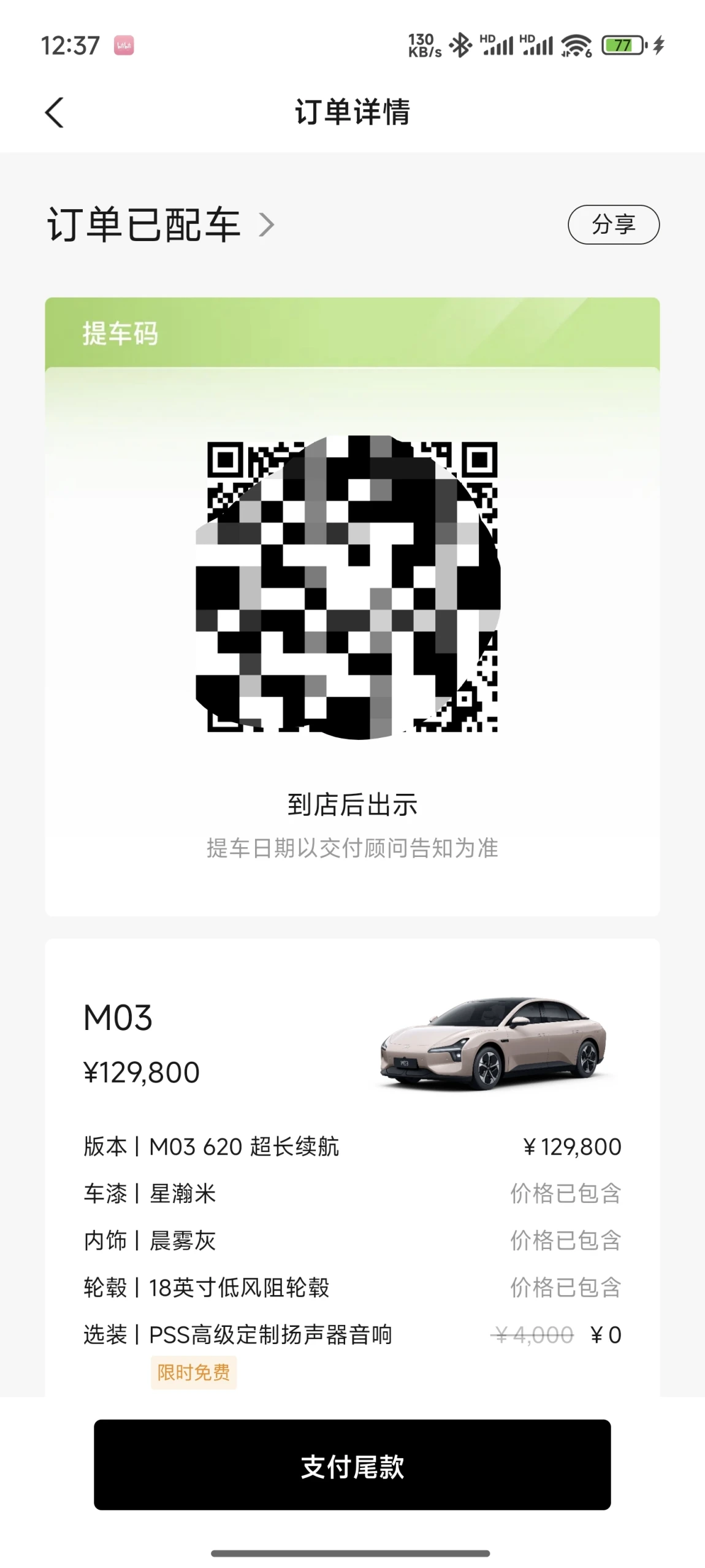 9.9上午的终于配车咯,销售说预计五天左右到店