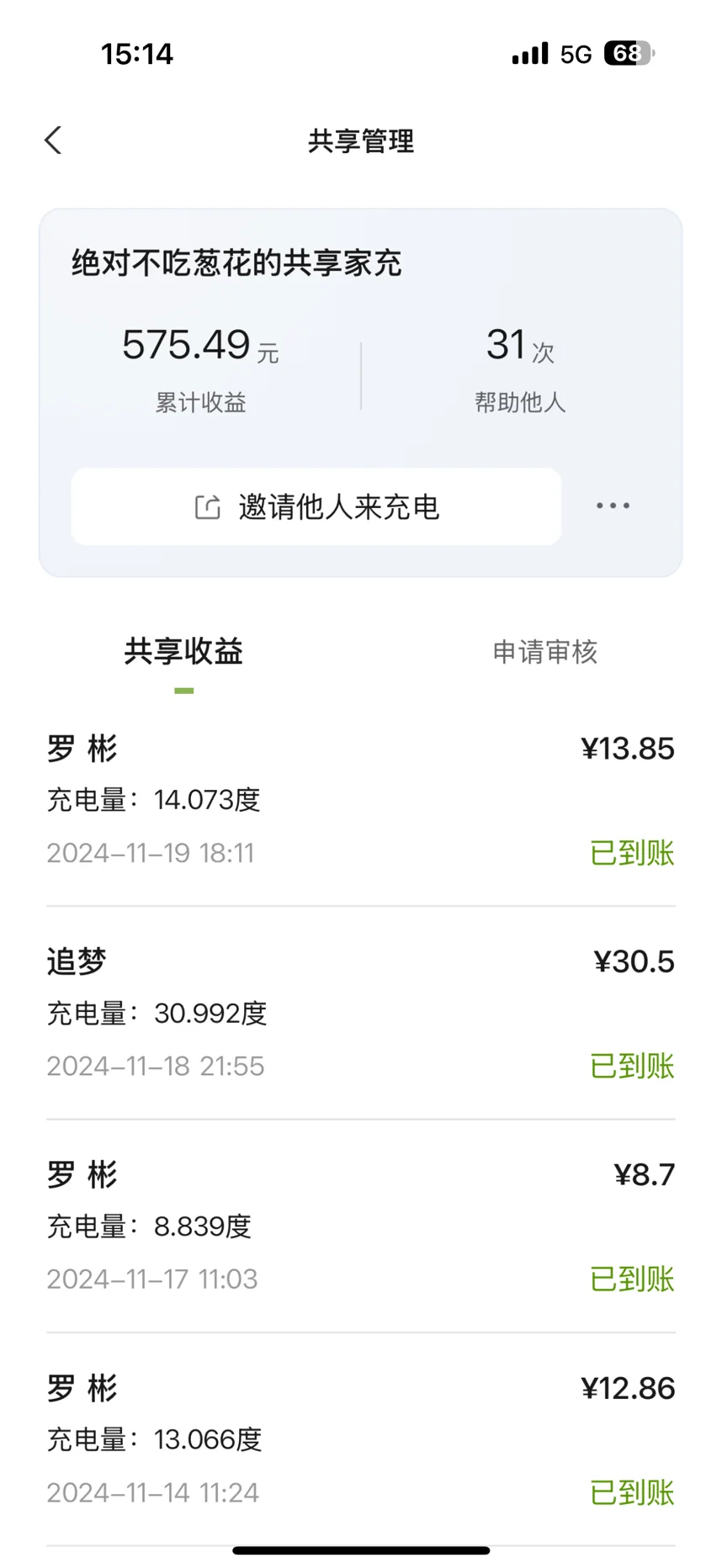 今年6月底喜提G6.当时一直在三方充电桩和小鹏充电桩犹豫不定#我的家充会打工# 说句实话,三方的充电桩,确实要便宜很多。经过斗争后安装的小鹏,想的是毕竟原装的更适配,不伤电池。毕竟有终身质保。今年9月得知可以共享家充后,果断第一时间进行开通,价格比小区同样的慢充便宜一点点🤏。后面有就固定的业主申请充电了。最让人不可思议的是,基本上赚来的收益把我自己充电的钱全部都节省了。这不妥妥的一个终身免费充电的政策吗。当时除了庆幸自己安装的小鹏。让我又多享受了一项优惠政策。所以说,还没有安装的小伙伴们,有车位条件的,一定安装。给自己一个终身免费充电的机会。