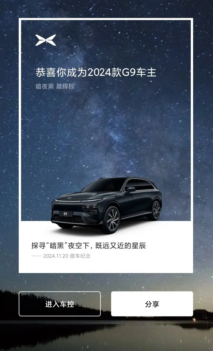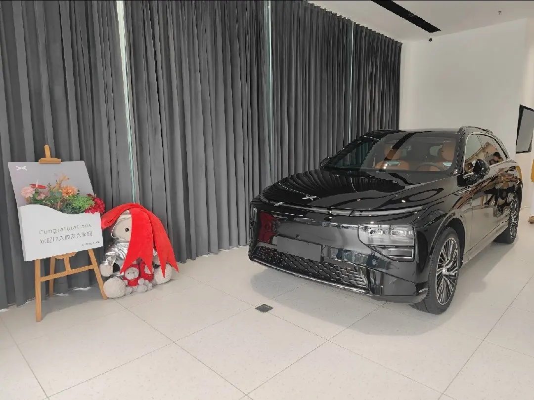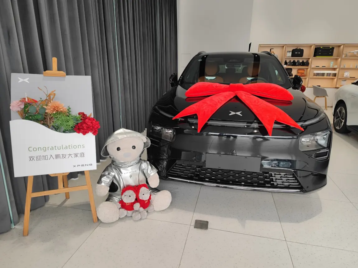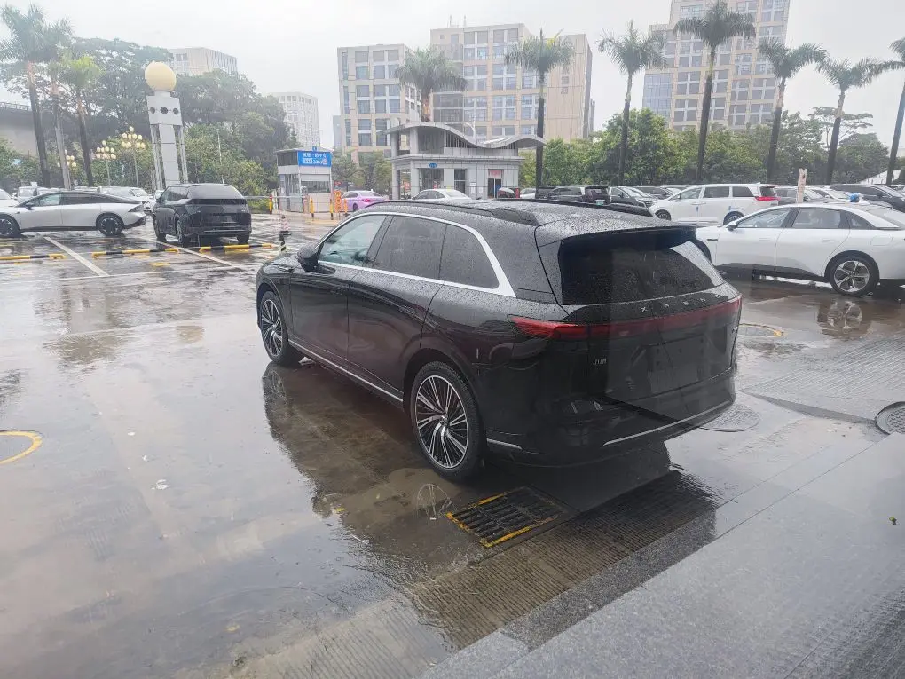 隔着玻璃就看到外边的G9,下着雨, 没近看,外观还是很符合当下的审美。车漆质感在雨滴衬托下也很不错。