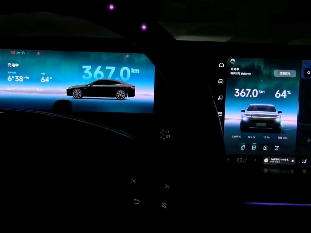 一个是充电的极光动画,充电状态下,仪表屏和大屏都会出现极光的效果,再搭配一首«漠河舞厅»,在车里等待充电的时间,也变得浪漫起来了