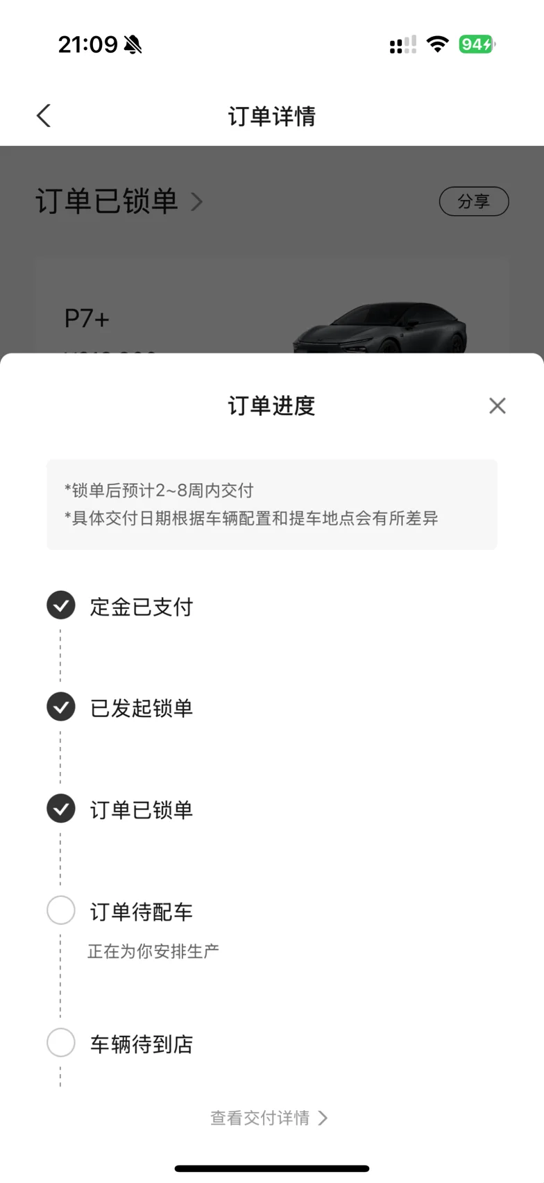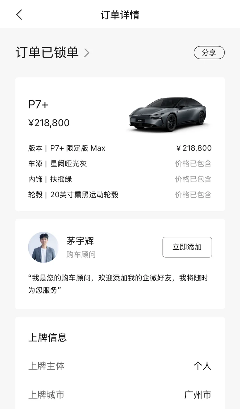 #小鹏P7+# #小鹏P7+首批车主火热提车# 看到限定版有人开始提车了…2-8周这个大范围,慢慢等…应该是发布会那天是10点左右才最后锁单完成的(系统各种崩溃,差点就放弃了)有没有一样在等限定版的?不知道现在交付的是几点锁单的了?还要排多久。。👻👻【呼唤500位限定版车主集结😷】